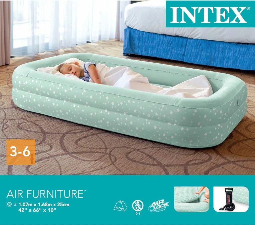 Intex Kinder – Luftmatratze – Einzel – Mit Handpumpe Und Reparatuset – 168x107x25 Cm – PVC – Beige