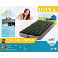 Intex Luftbett – 1 Person – 99 X 191 X 25 Cm – Grün – Mit Pumpe + Spannbettlaken Schwarz + Reperaturset