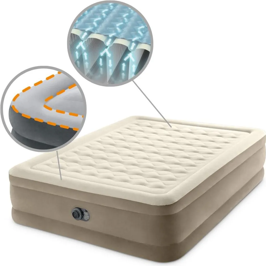 Intex Ultra Plush – Luftmatratze – Doppelt – Mit Reparaturset Und Eingebaute Pumpe – 203x152x46 Cm – PVC – Beige