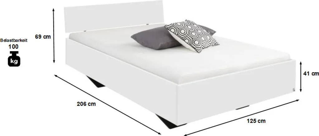 Jugendbett Maja 120*200 Cm Weiß Inklusive Kopfteil Gäste Jugend Kinderzimmer Liege Bettgestell