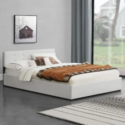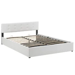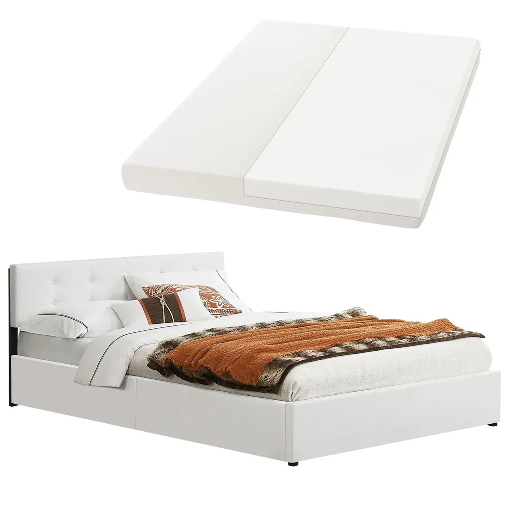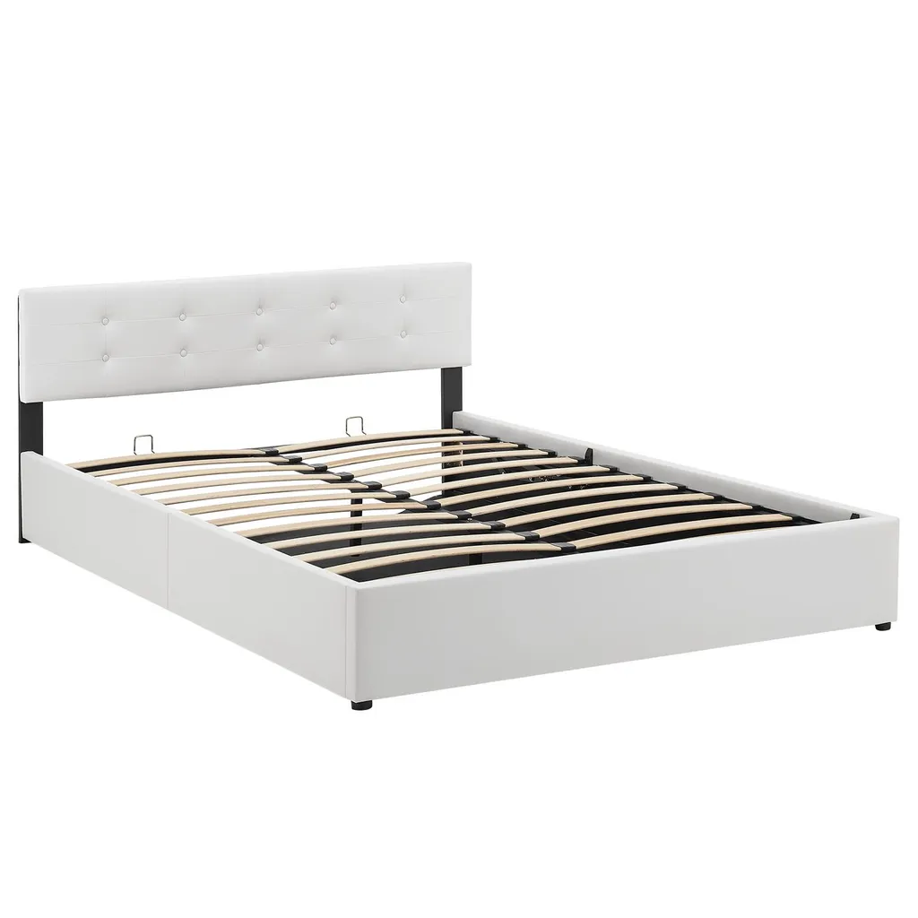 Juskys Polsterbett Marbella 140×200 Cm Mit Matratze, Bettkasten & Lattenrost – Bett Aus Kunstleder Und Holz – Jugendbett Weiß