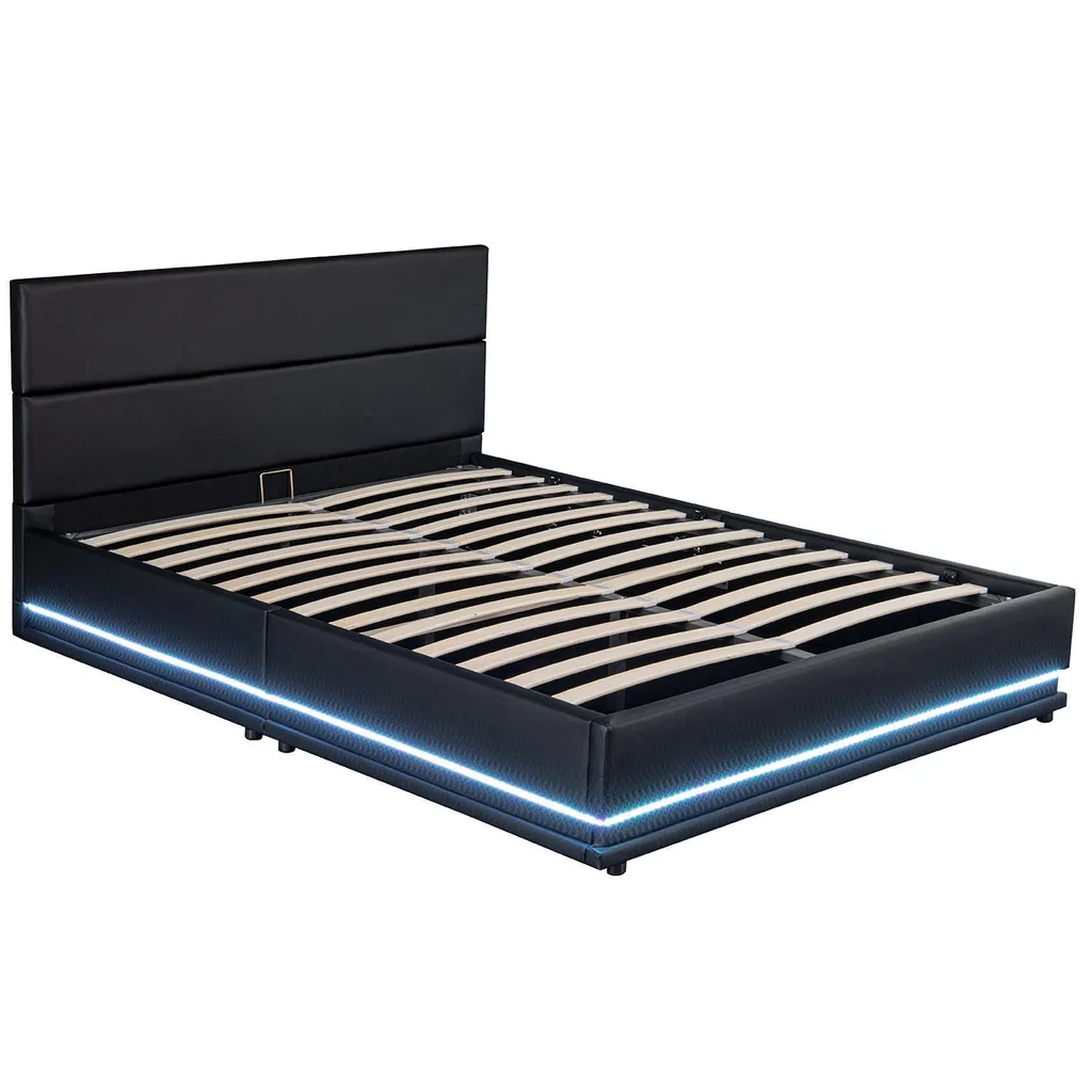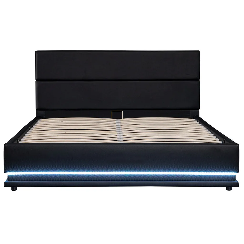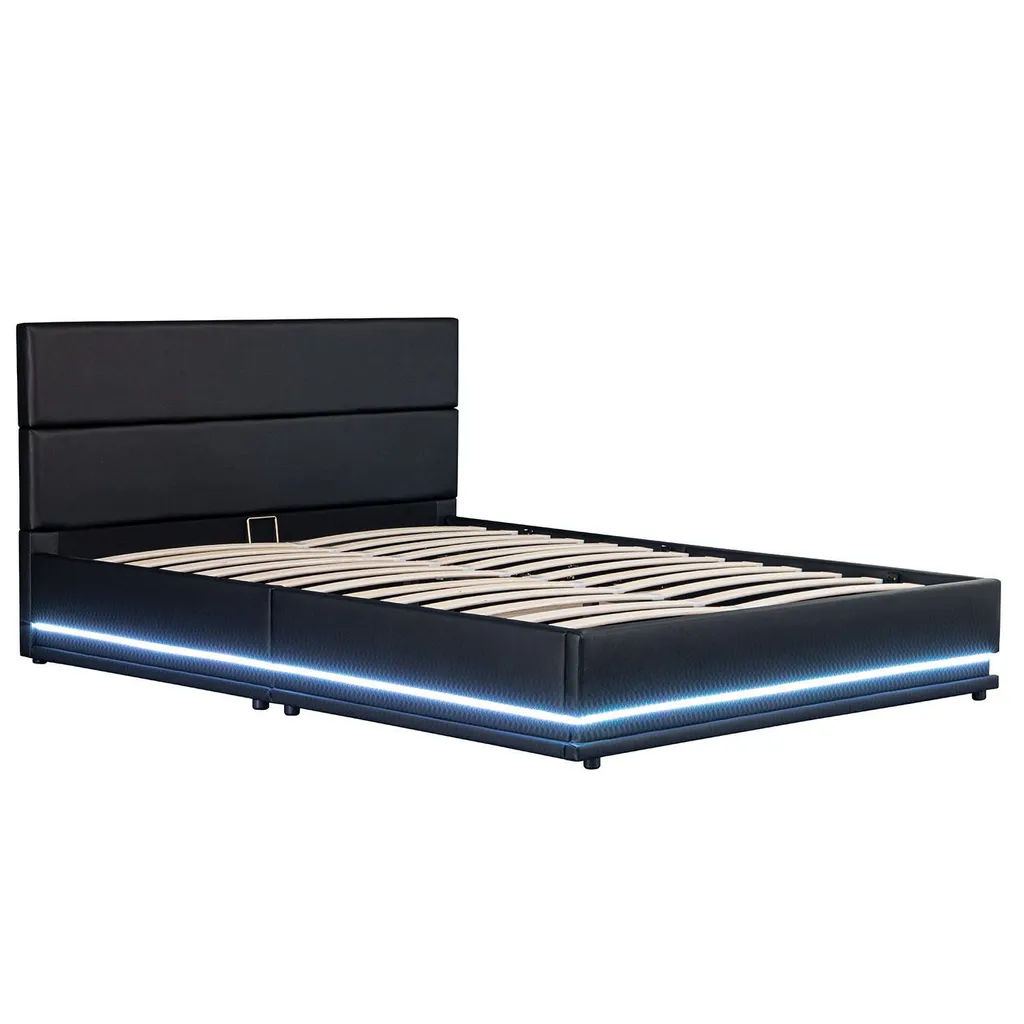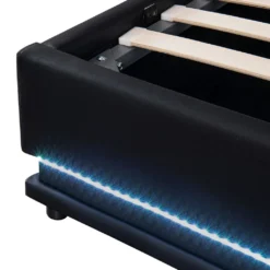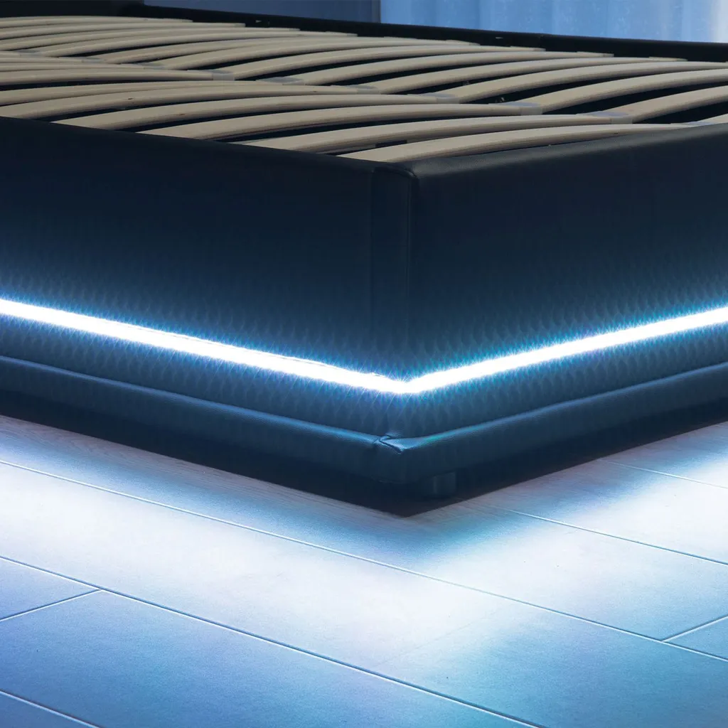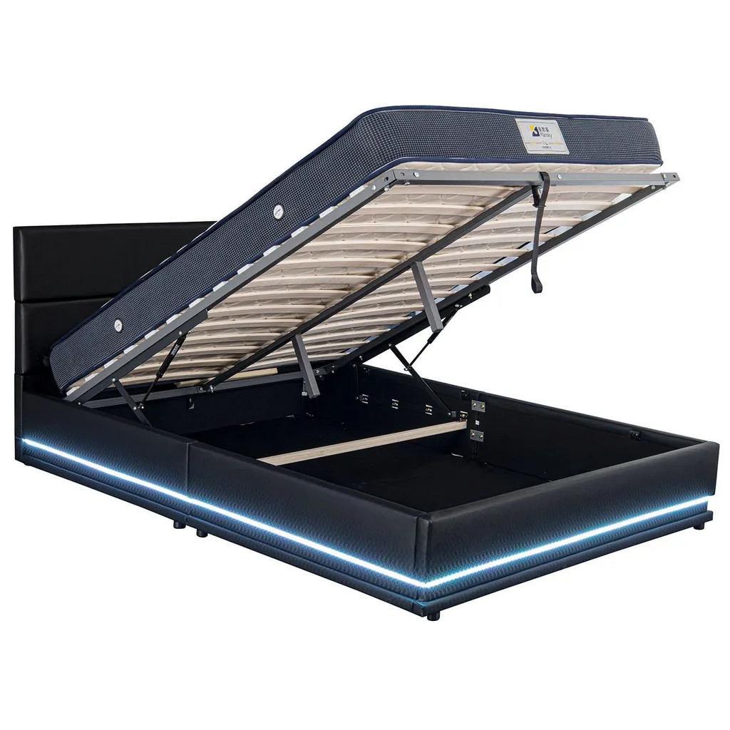 Juskys Polsterbett Toulouse 140 X 200 Cm Mit Bettkasten, LED Beleuchtung, Lattenrost & Matratze, Kunstleder & Holz Bett Bettgestell Jugendbett Schwarz