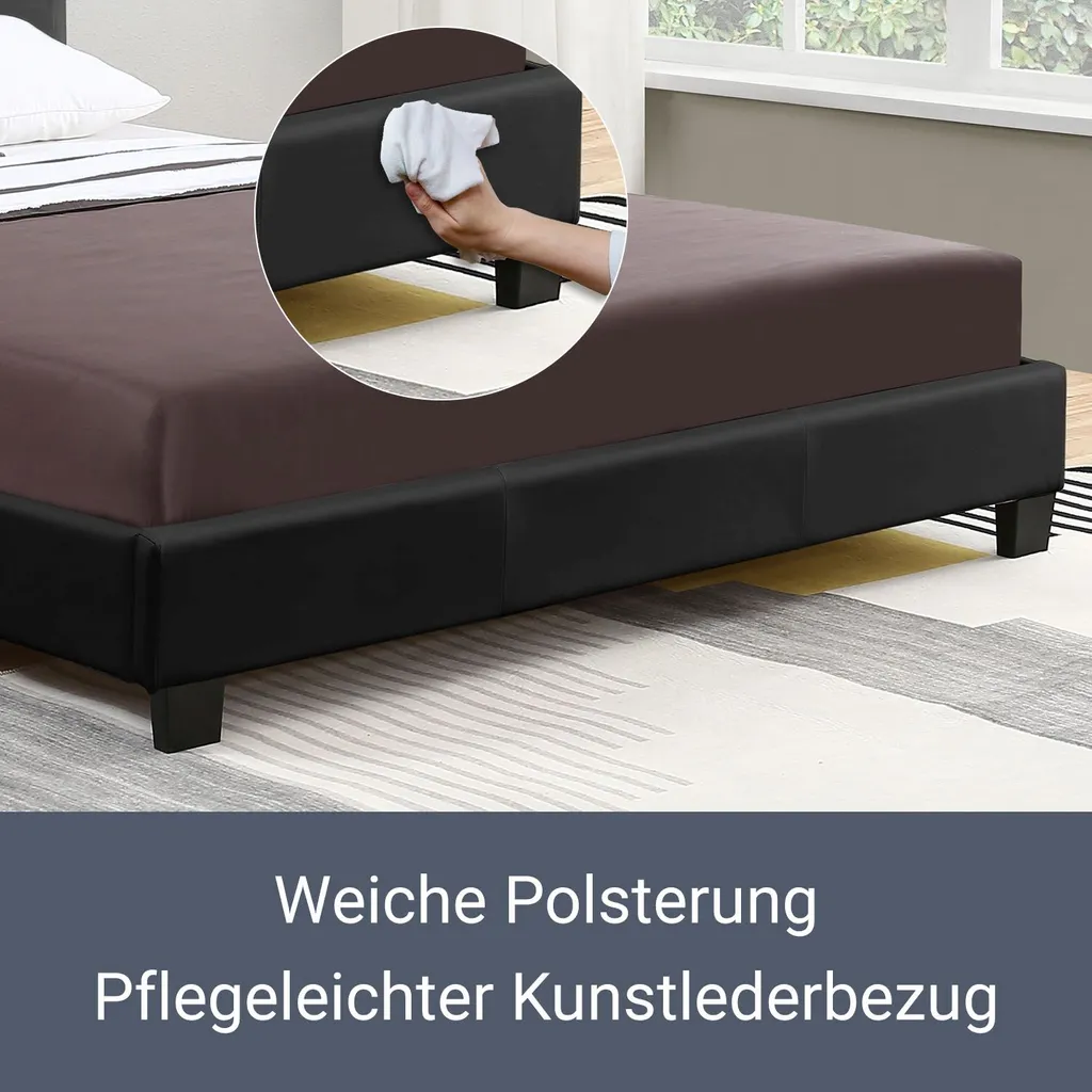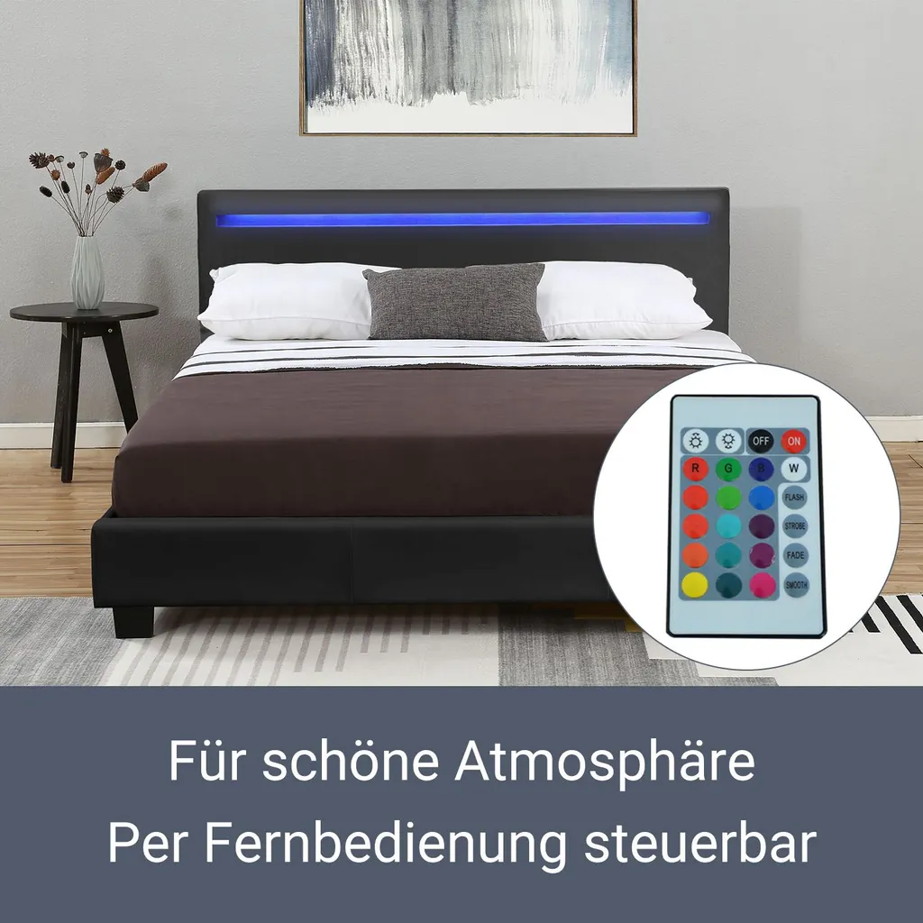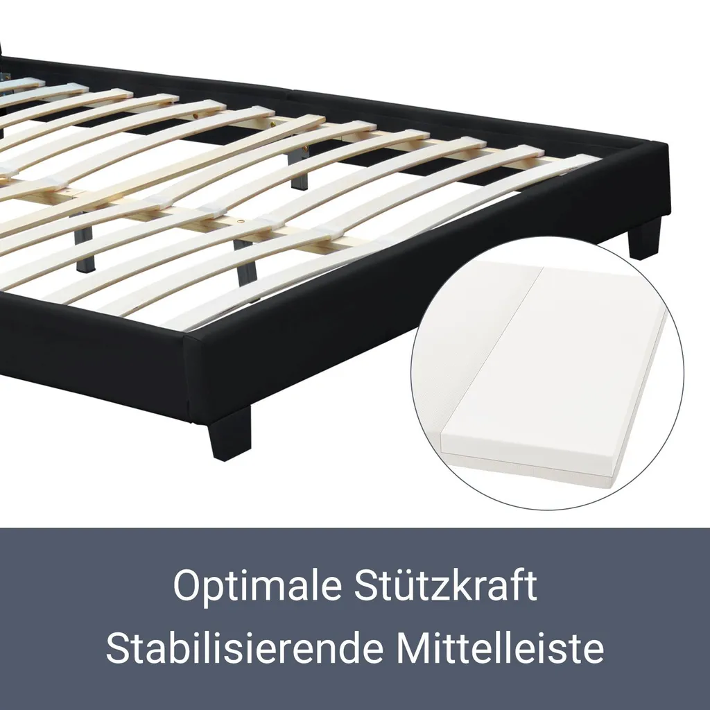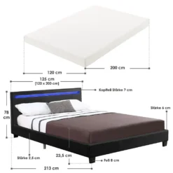 Juskys Polsterbett Verona 120×200 Cm – Bettgestell Inkl. LED-Beleuchtung, Lattenrost & Matratze – Schwarz – Kunstleder – Einzelbett Jugendbett