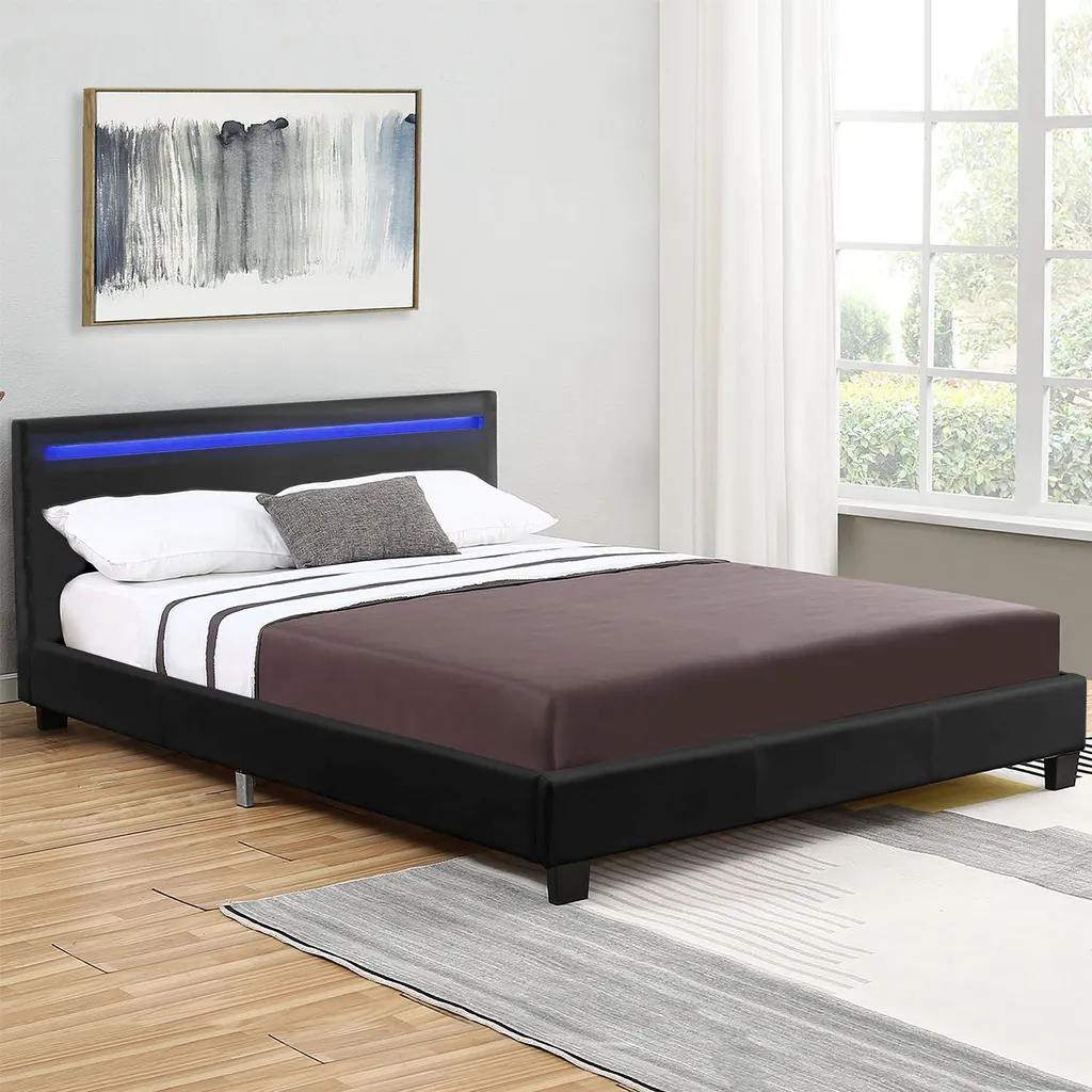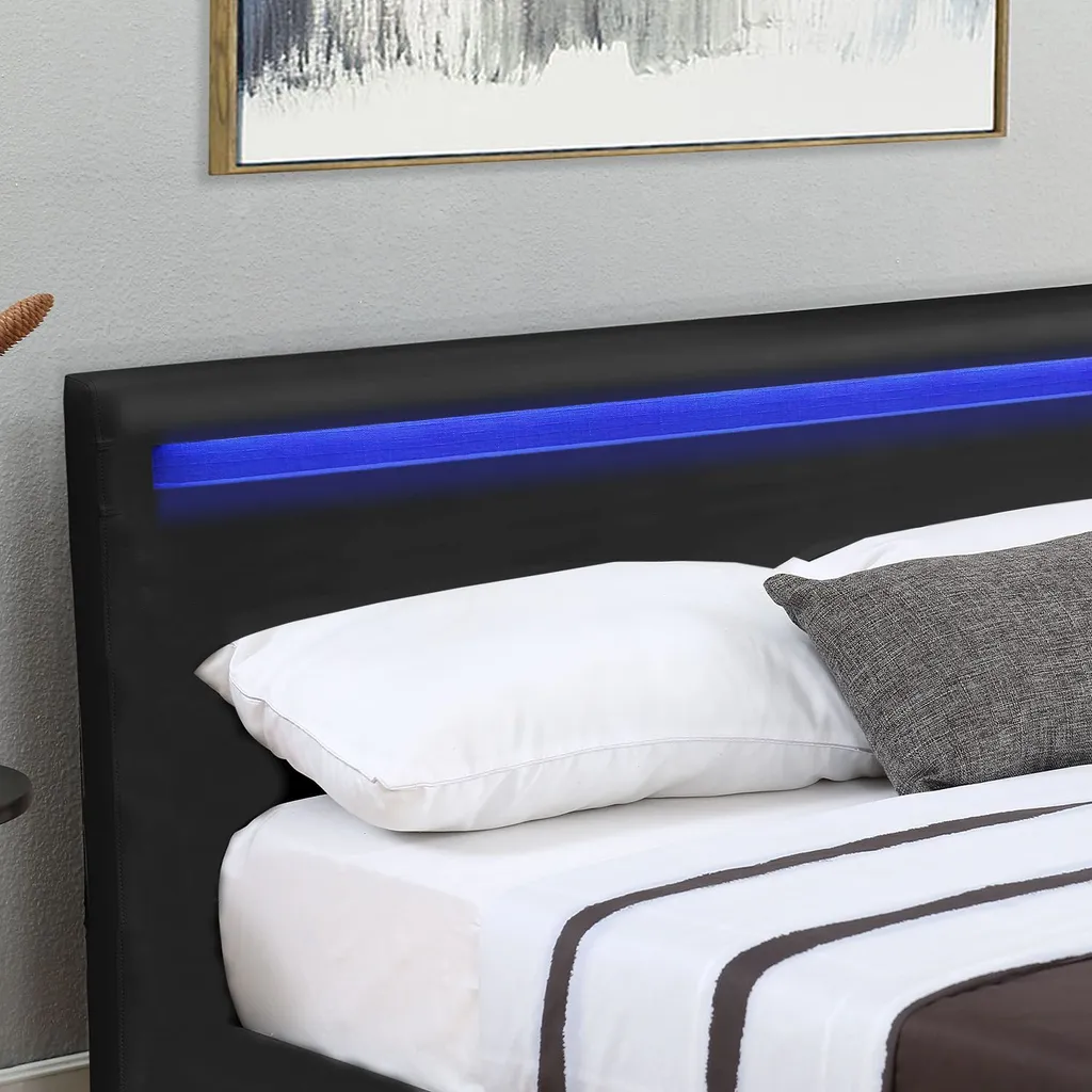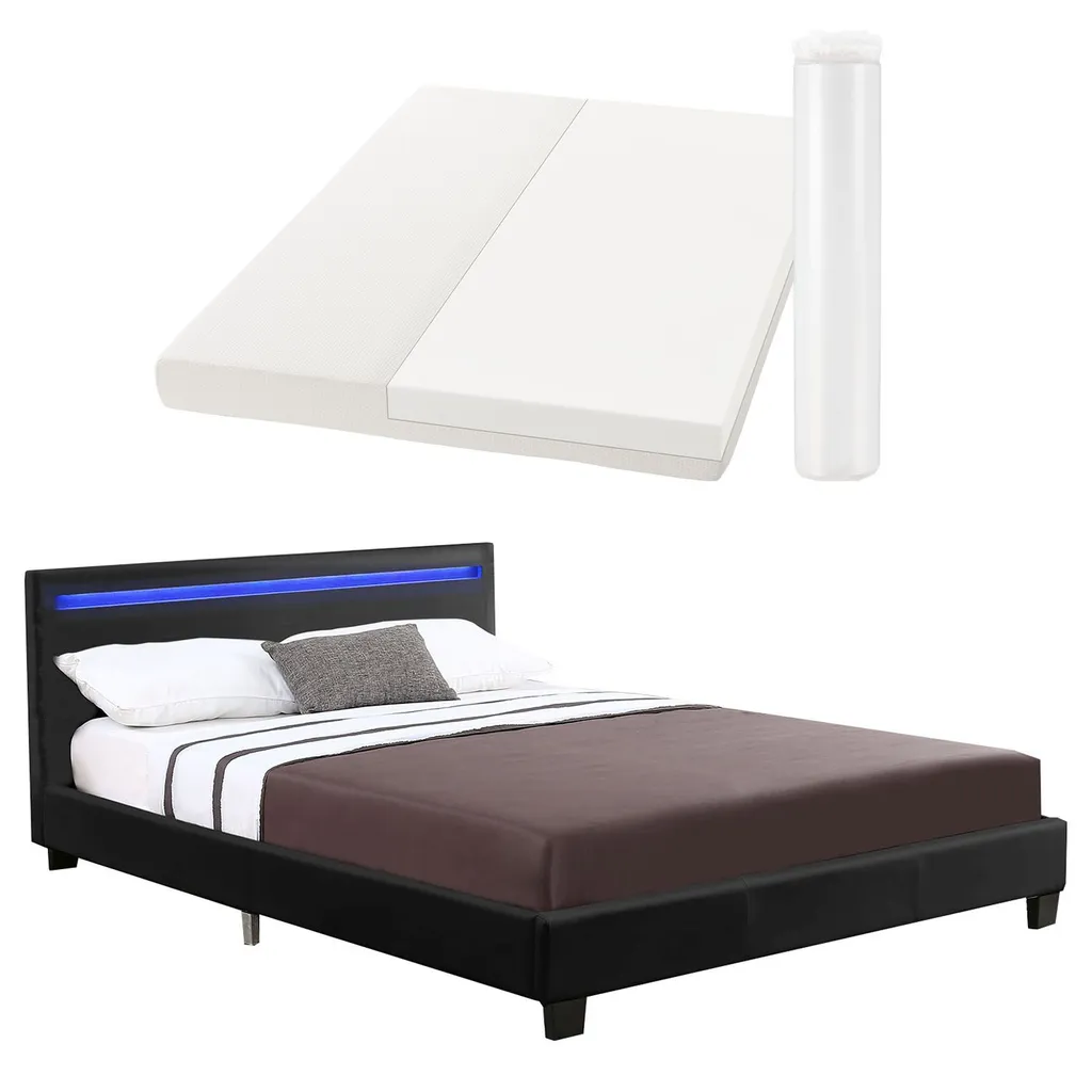 Juskys Polsterbett Verona 120×200 Cm – Bettgestell Inkl. LED-Beleuchtung, Lattenrost & Matratze – Schwarz – Kunstleder – Einzelbett Jugendbett