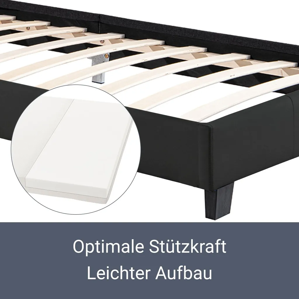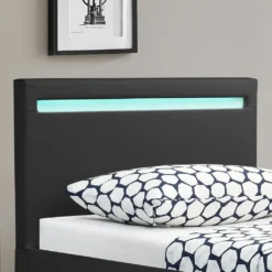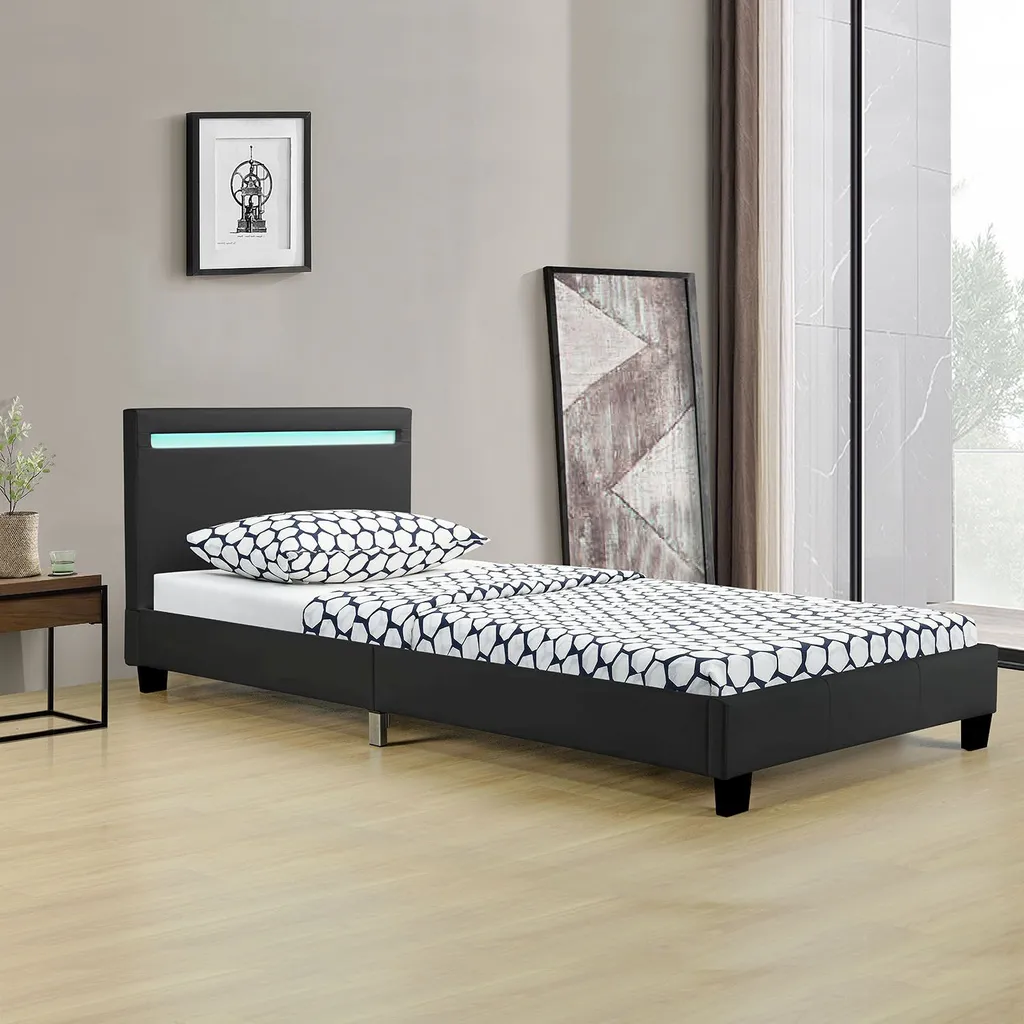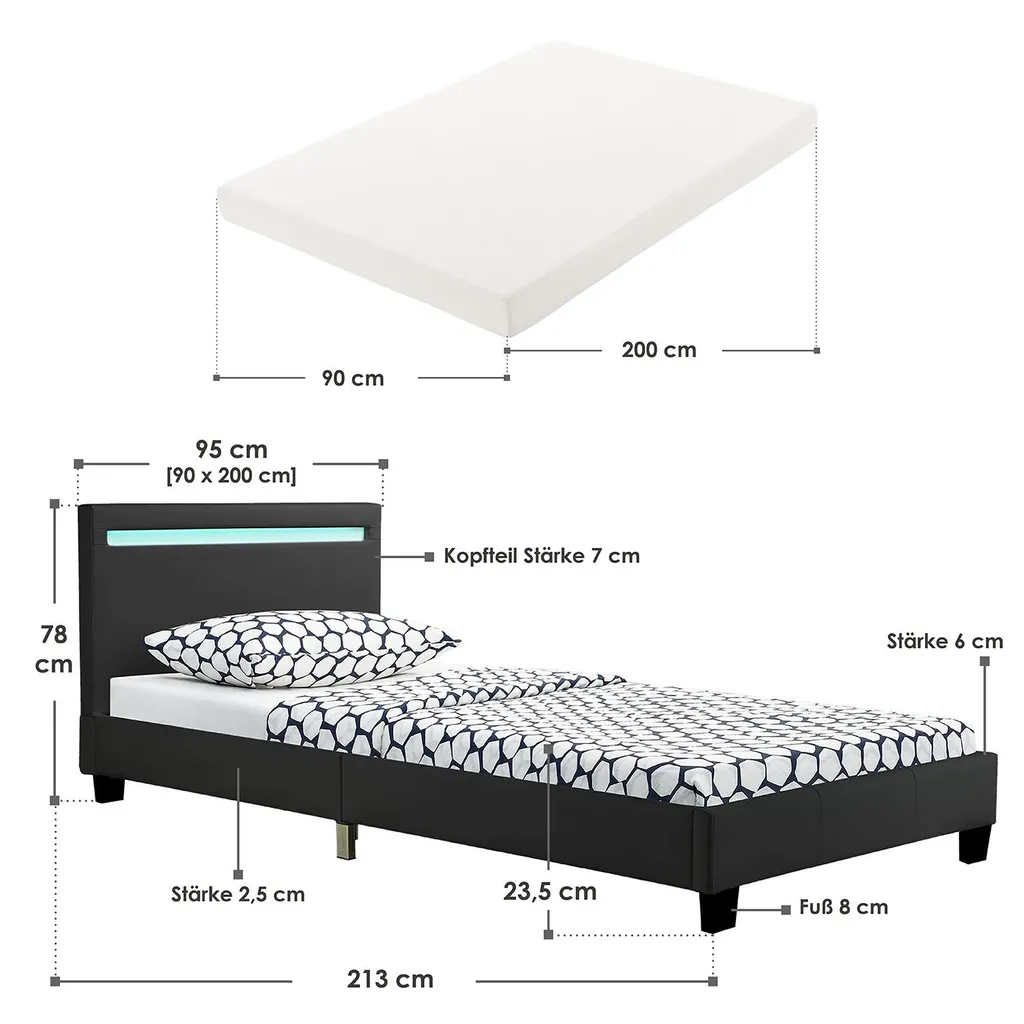 Juskys Polsterbett Verona 90×200 Cm – Bettgestell Inkl. LED-Beleuchtung, Lattenrost & Matratze – Schwarz – Kunstleder – Einzelbett Jugendbett