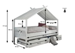 Kinderbett Emma Mit Dach / Himmelvorrichtung 90*200 Kiefer Massiv Weiß Jugendzimmer Liege Massivholz Spiel Hausbett