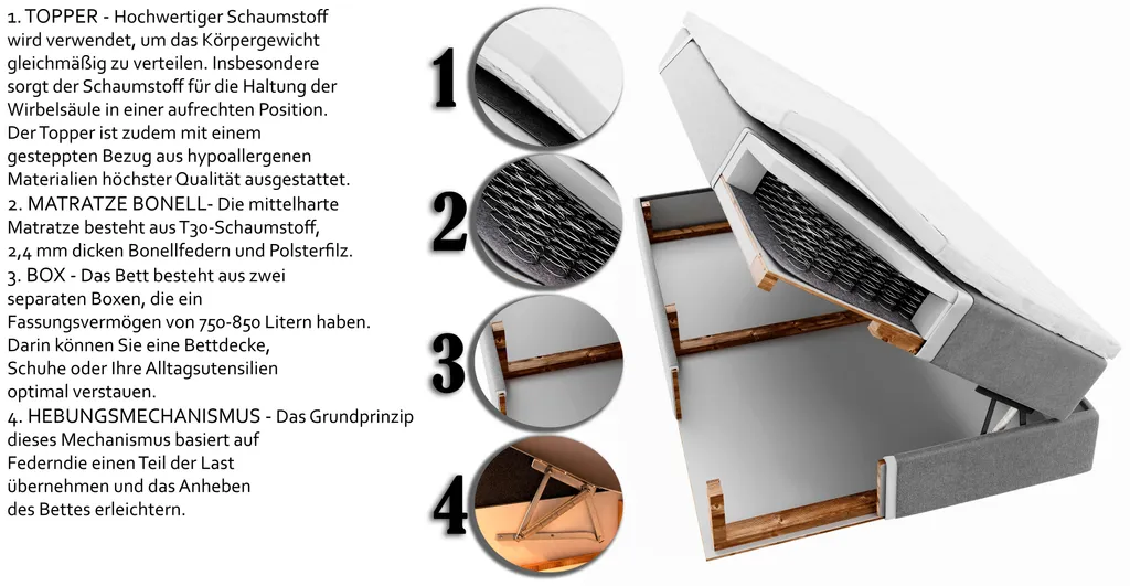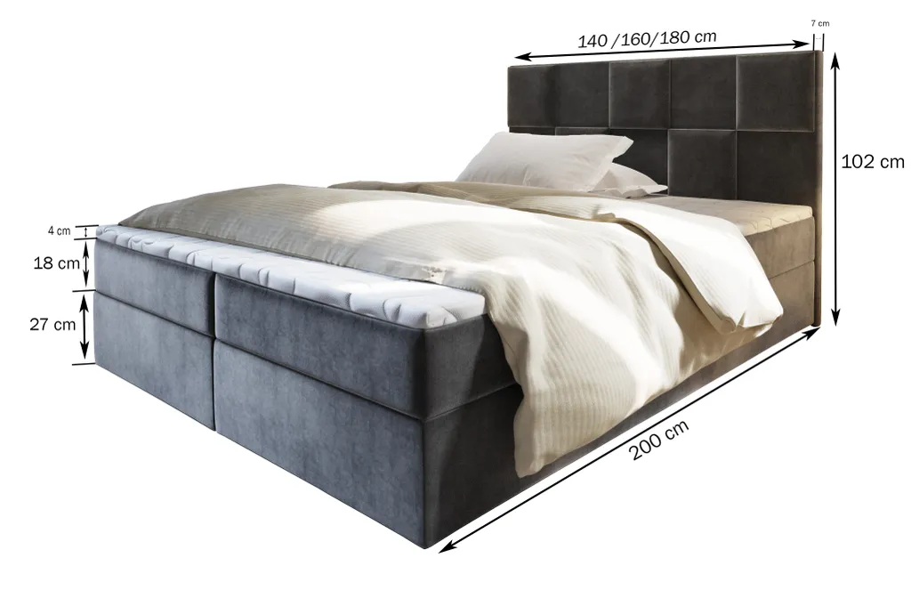 Masseno Boxspringbett PRATA 140×200 Cm Bett Komplett-Set Mit Matratze – KRONOS 27