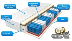 Schreibe die erste Rezension für „Matratze 140 X 200 Cm VITORIA 7 Zonen H3 Premium Taschenfederkern Mit Kokos Höhe Ca 17 Cm“ Antwort abbrechen