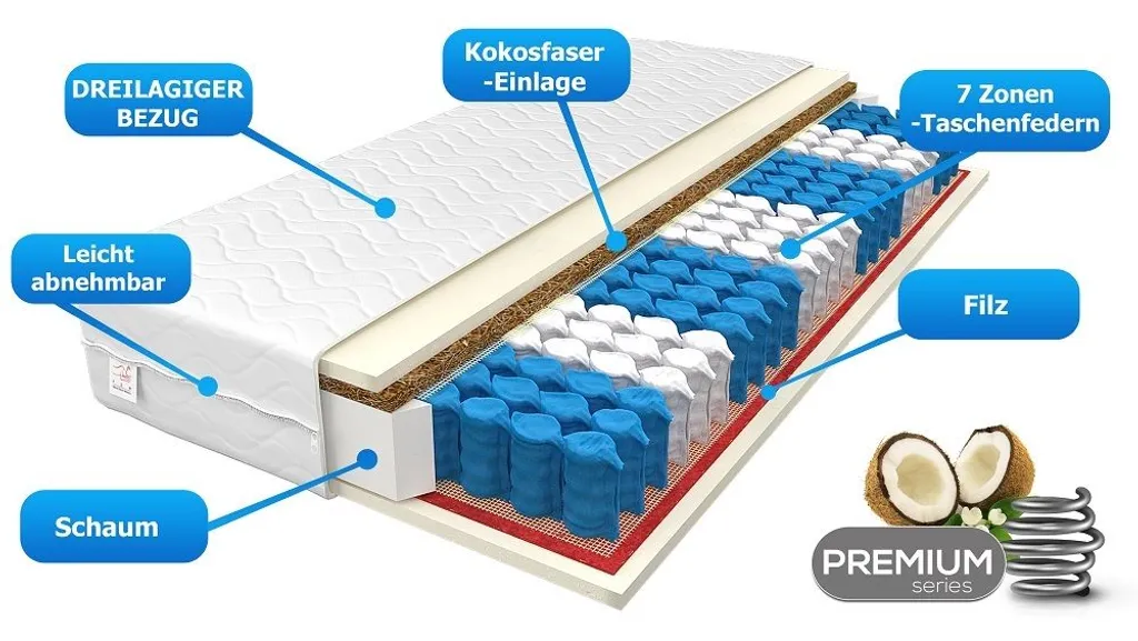 Matratze 140 X 200 Cm VITORIA 7 Zonen H3 Premium Taschenfederkern Mit Kokos Höhe Ca 17 Cm