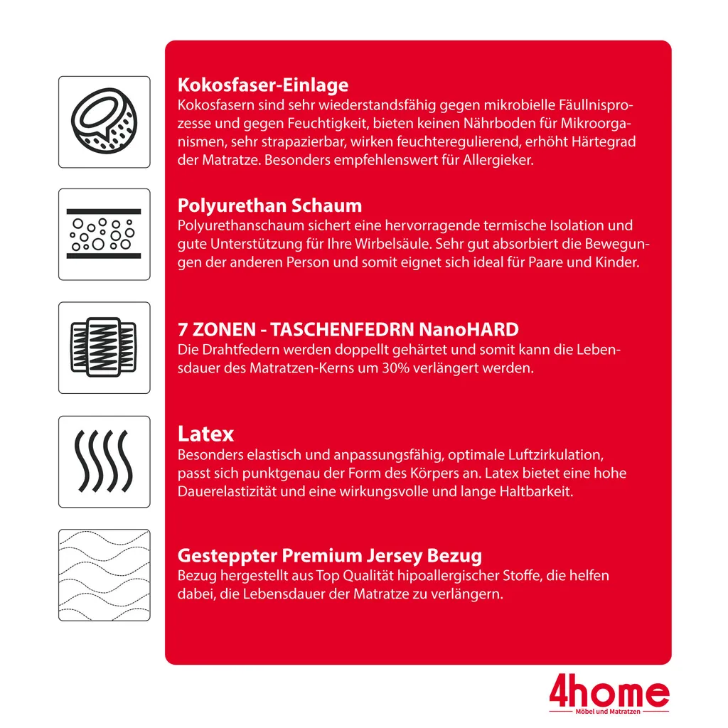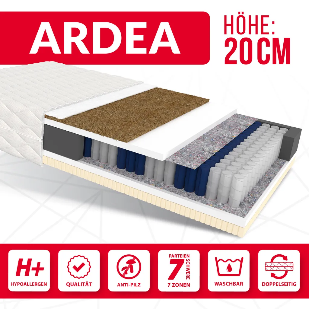 Matratze 140×200 Cm ARDEA 7 Zonen H3 H4 Taschenfederkern Latex Kokos Höhe Ca. 20 Cm Mit Waschbarem Bezug Premium Jersey