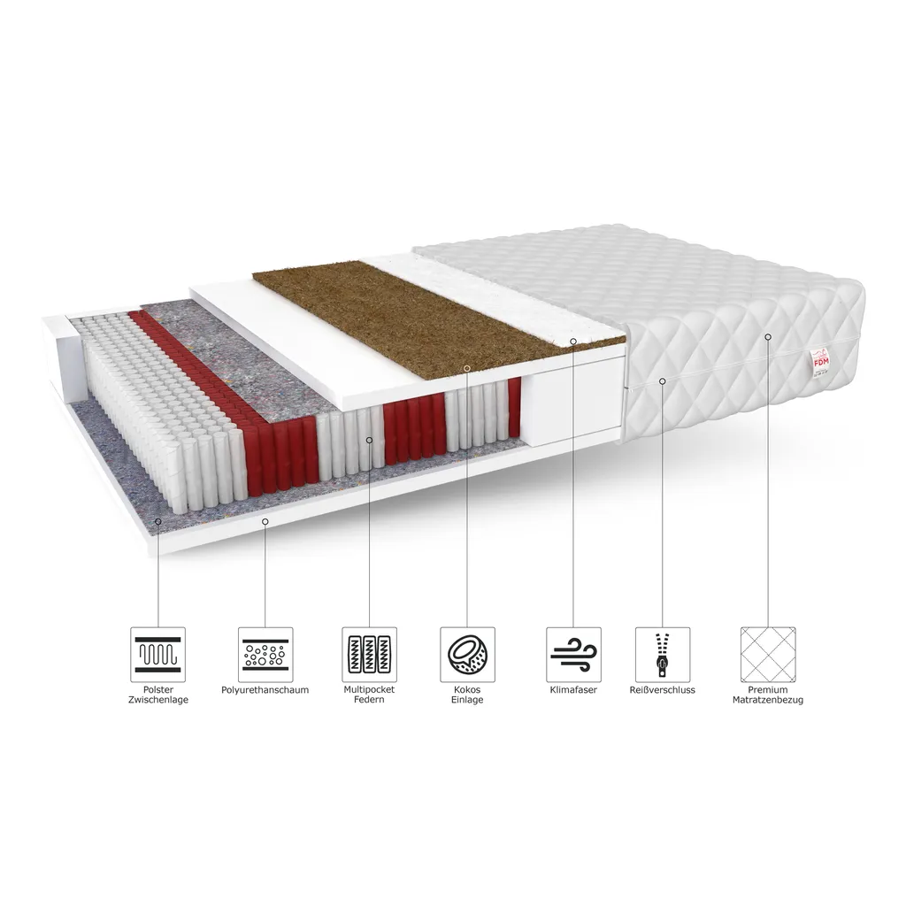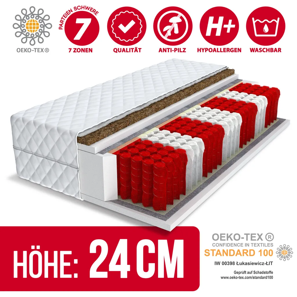 Matratze 140×200 Cm HOME MAX MULTI Höhe Ca. 24 Cm H3 H4 Premium Multipocket-Taschenfederkern 7 Zonen Kokos
