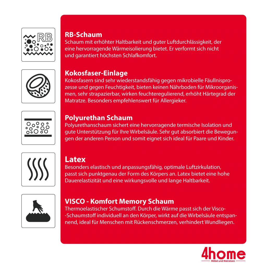 Matratze 140×200 Cm SAVONA Kaltschaum 7 Zonen H3 H4 Höhe Ca.22 Cm Kokos Latex Visco HR Matratzenbezug Premium JERSEY