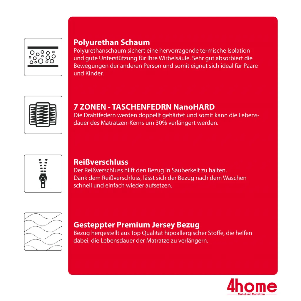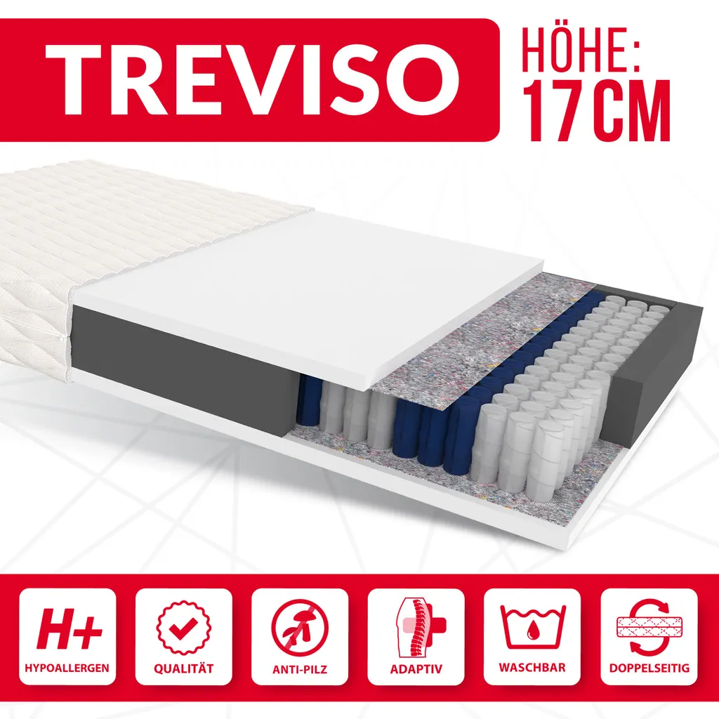Matratze 180×200 Cm TREVISO 7 Zonen H3 Taschenfederkern Kaltschaum Höhe Ca. 17 Cm Mit Waschbarem Bezug Premium Jersey