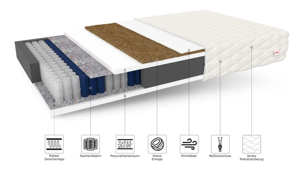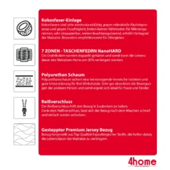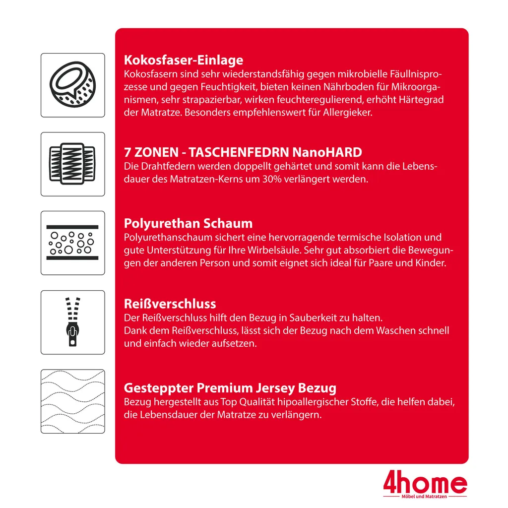 Matratze 90 X 200 Cm FAMILY 7 Zonen H3 H4 Taschenfederkern Kokos Höhe Ca. 18 Cm Matratzenbezug Premium Jersey