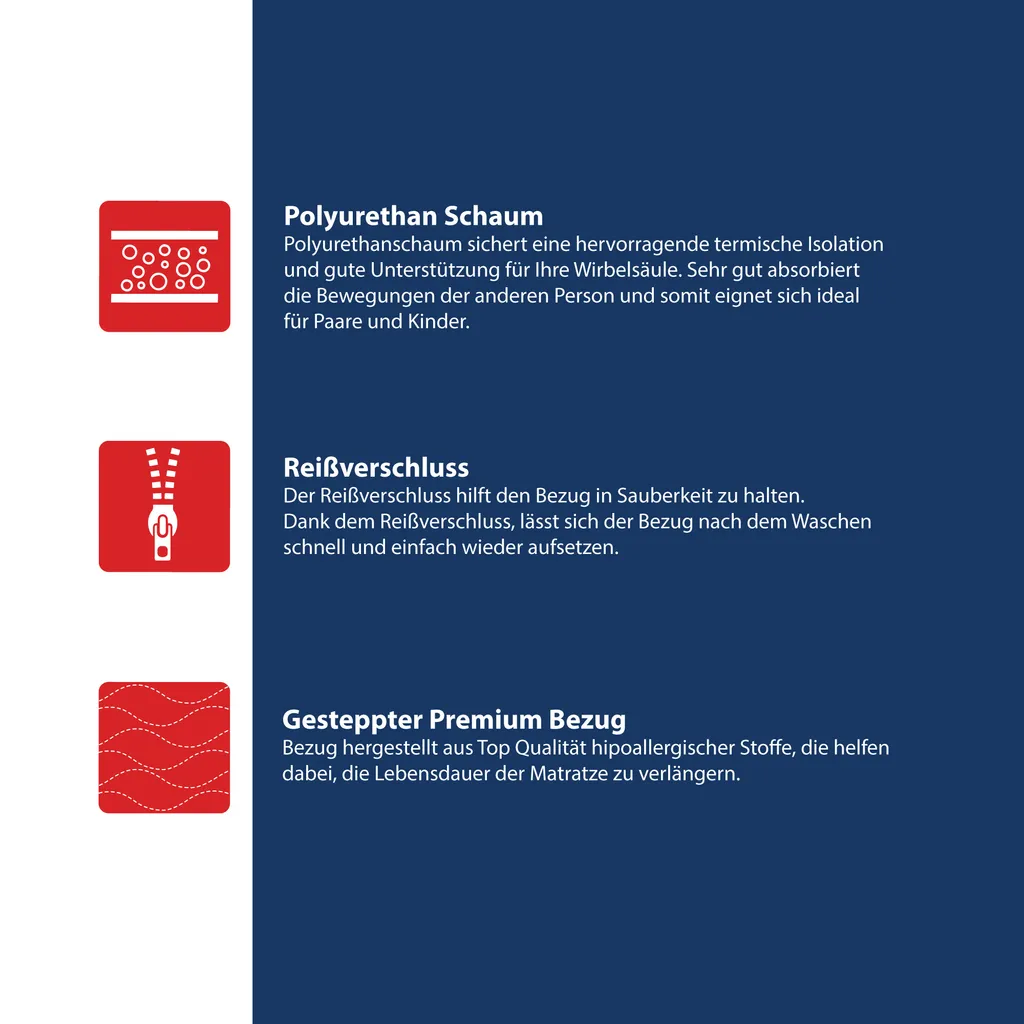 Schreibe die erste Rezension für „Matratze 90×200 Cm ALTO Kaltschaum Höhe Ca. 12 Cm H3 Kaltschaummatratze Premium Bezug“ Antwort abbrechen