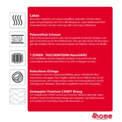 Matratze 90×200 Cm FELIX 7 Zonen H3 H4 Taschenfederkern Kokos Latex Höhe Ca. 20 Cm Mit Waschbarem Bezug Premium Candy