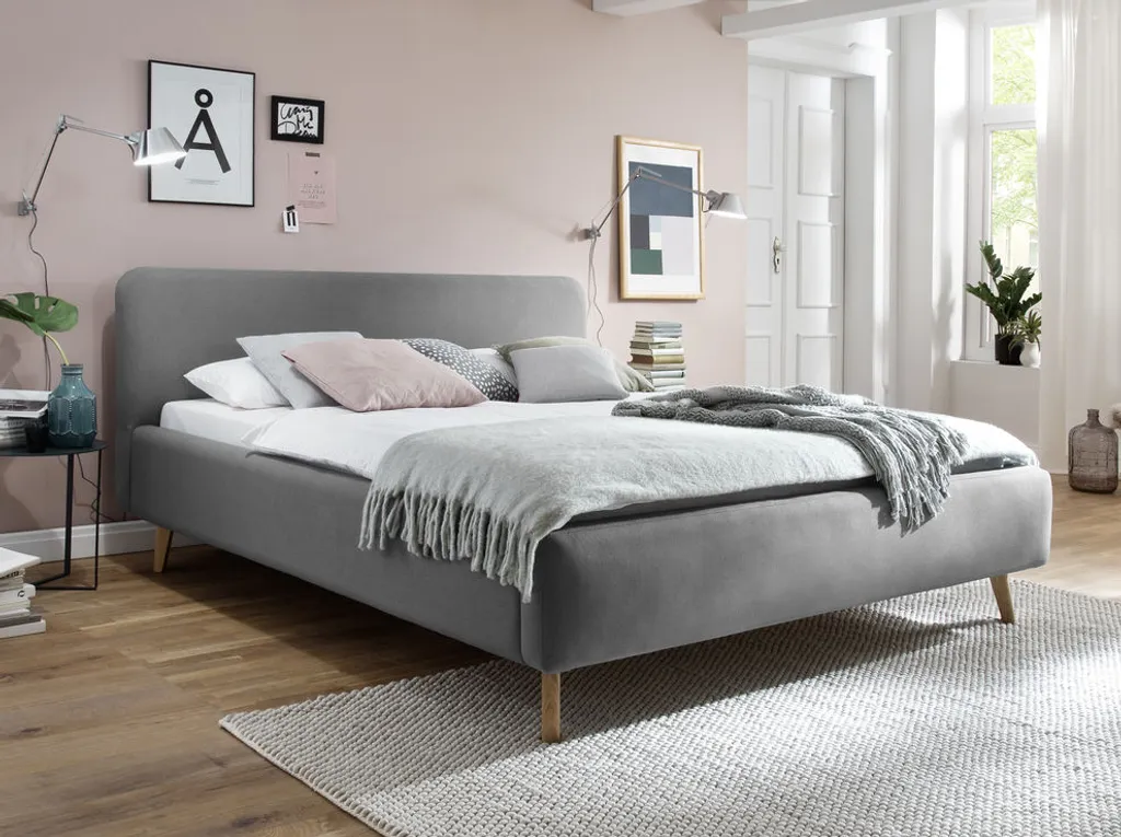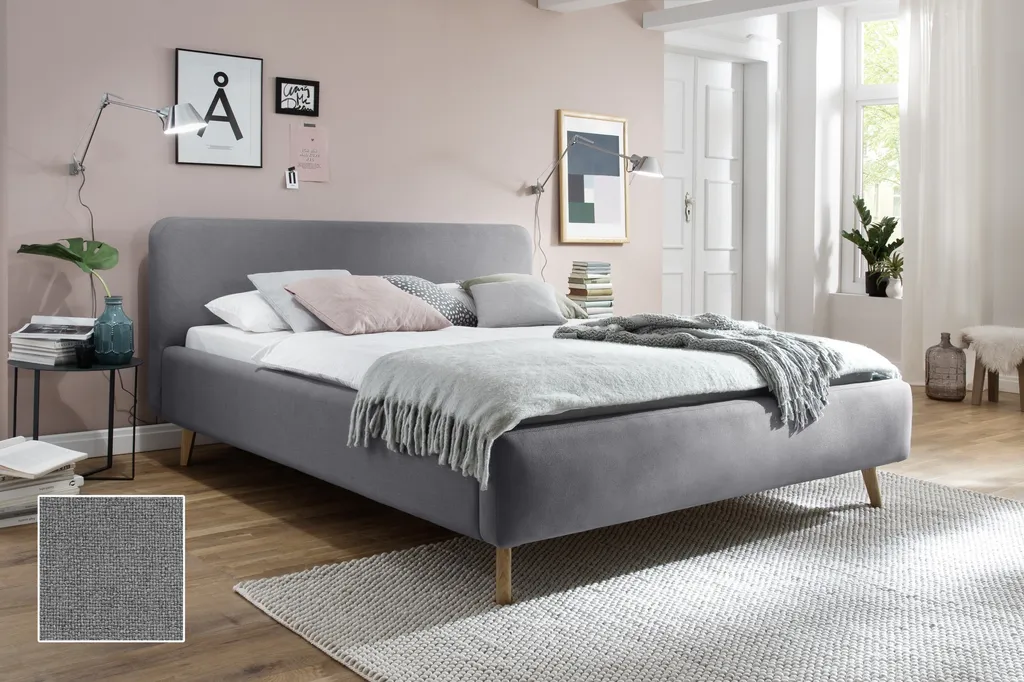 Meise Polsterbett Mattis In Stoff Hellgrau 180×200 Cm
