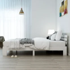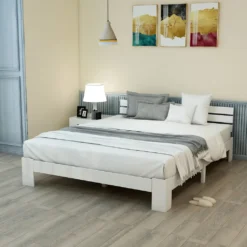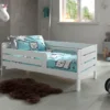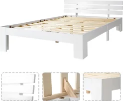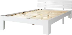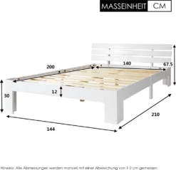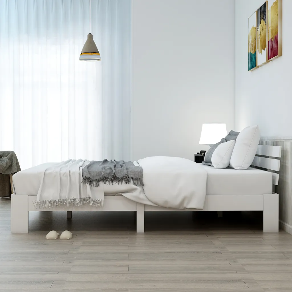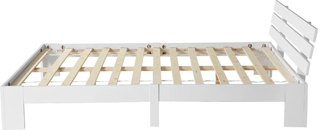 Merax Doppelbett 140x200cm Funktionsbett Mit Kopfteil Und Lattenrost, Kiefer Massivholz Bett Balkenbett Bettgestell Bettrahmen Holzbett, Weiß