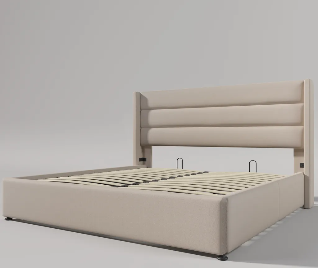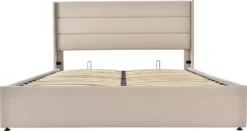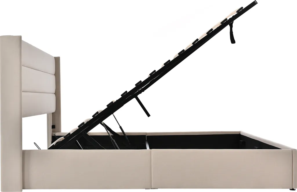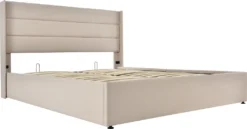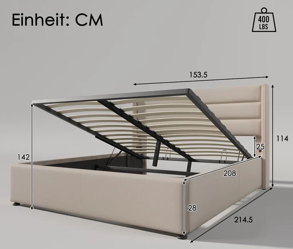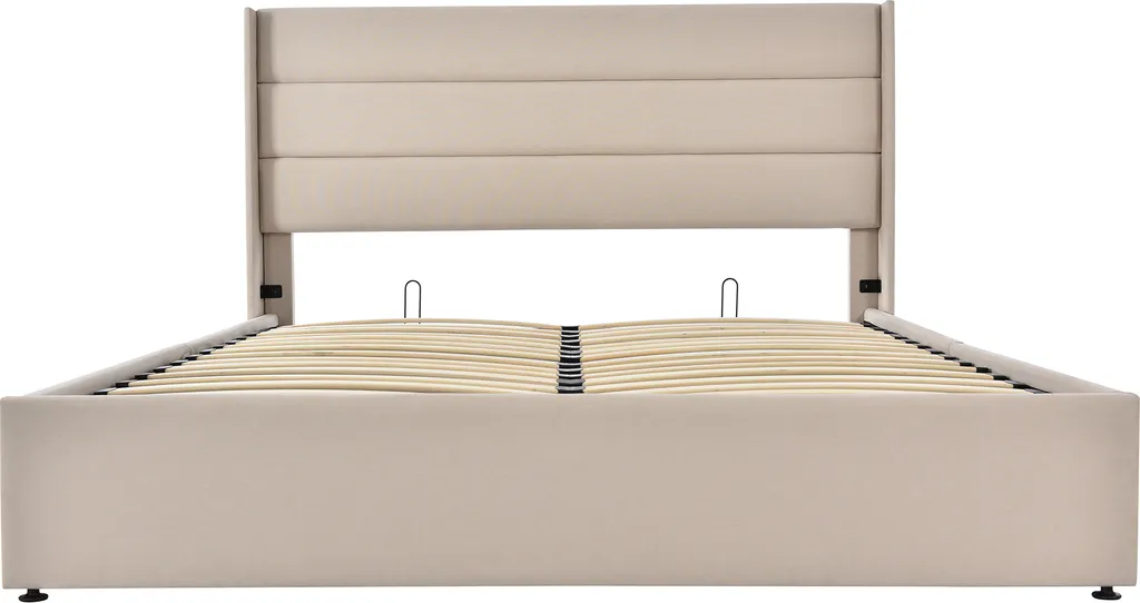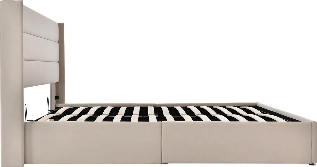 Merax Hydraulisches Boxspringbett 140x200cm Polsterbett Mit Bettkasten, Holz Lattenrost Und Metallrahmen, Stauraumbett Doppelbett Aus Leinen, Beige