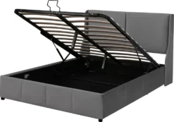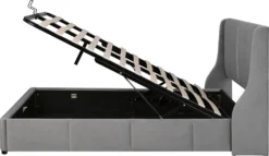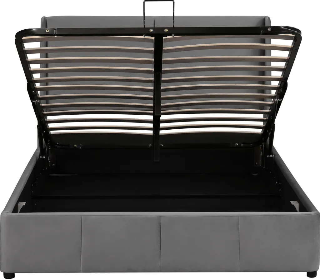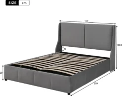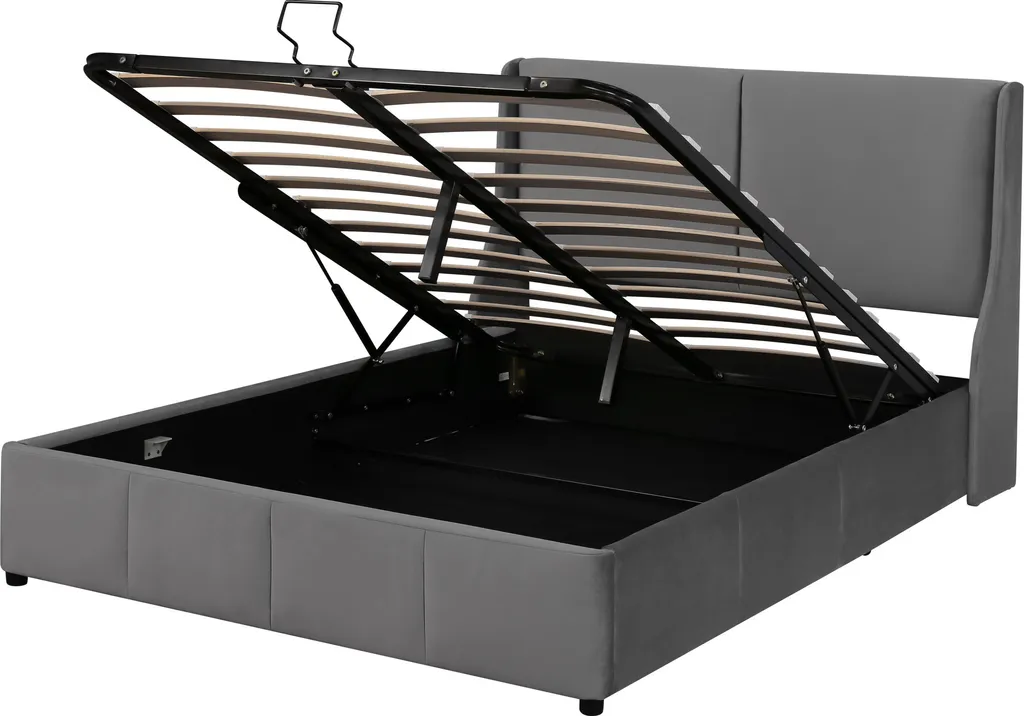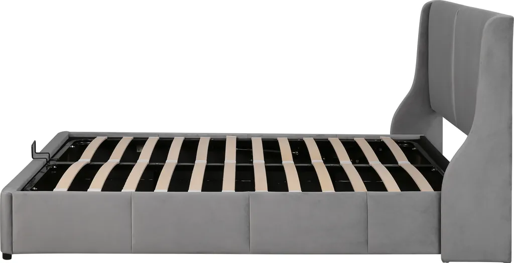 Merax Hydraulisches Funktionsbett 140×200 Cm Polsterbett Boxspringbett Mit Bettkasten Und Rückenlehne, Lattenrost Und Stauraum, Ohrform Doppelbett Ehebett Aus Samt, Grau