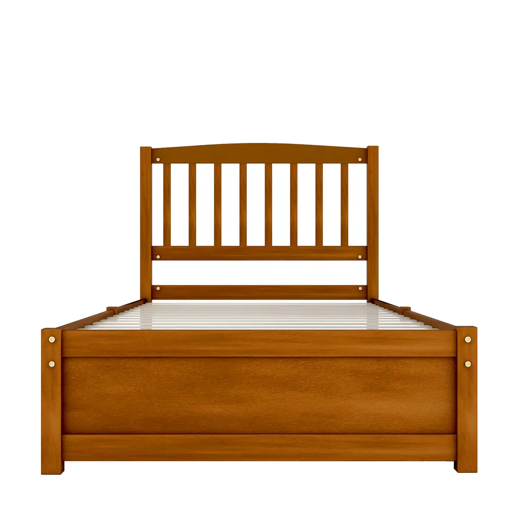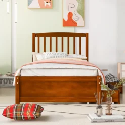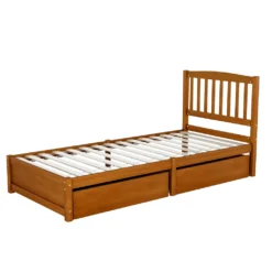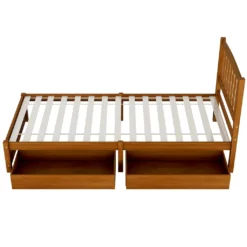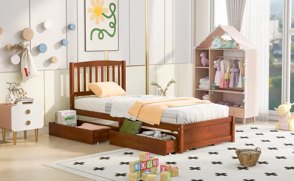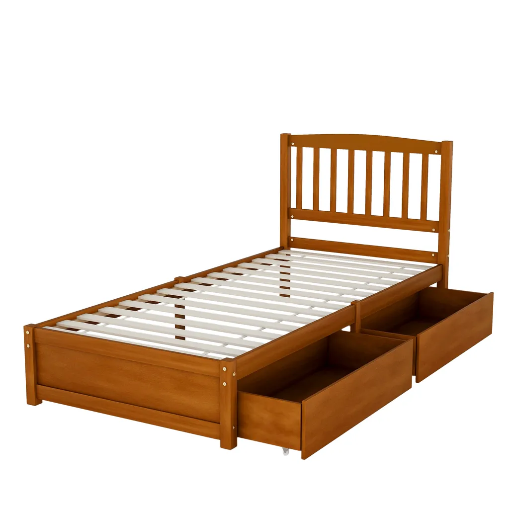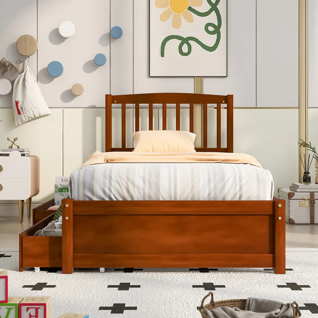 Merax Jugendbetten 90x200cm Einzelbett Massivholzbett Inkl. 2 Schubladen, Kopfteil Und Lattenrost, Gästebett Aus Kiefer, Farbe: Walnuss