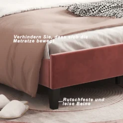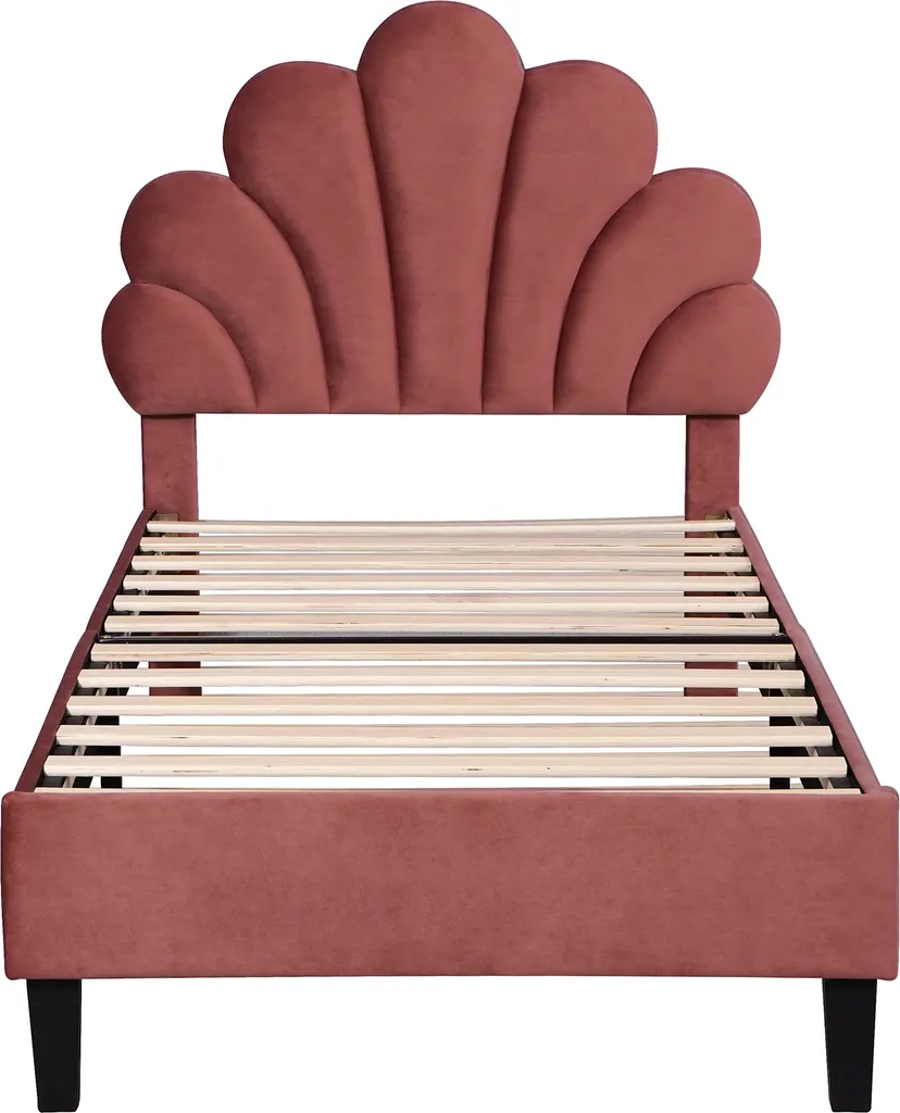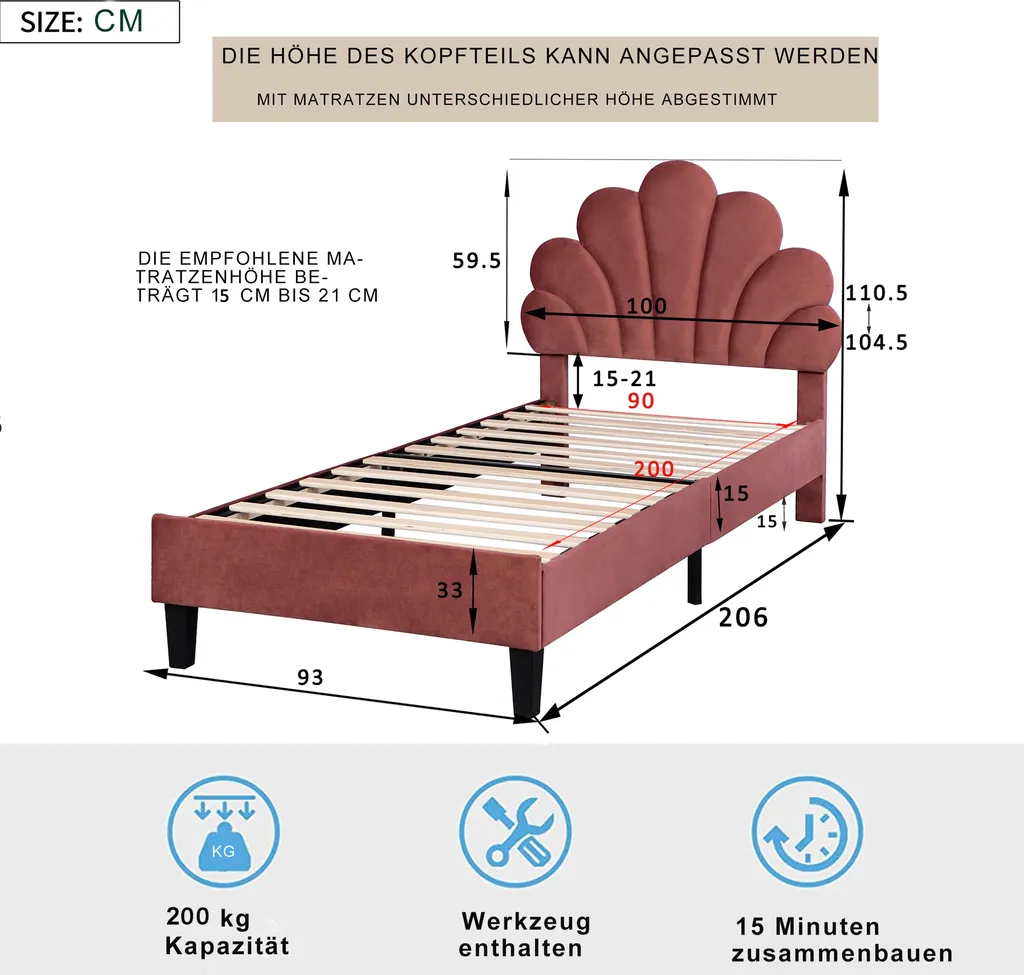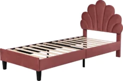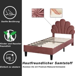 Merax Polsterbett 90x200cm Samt Mit Blumenform-Kopfteil Und Lattenrost, Jugendbett Kinderbett Einzelbett Für Kinder Und Erwachsene, Bohnenrot