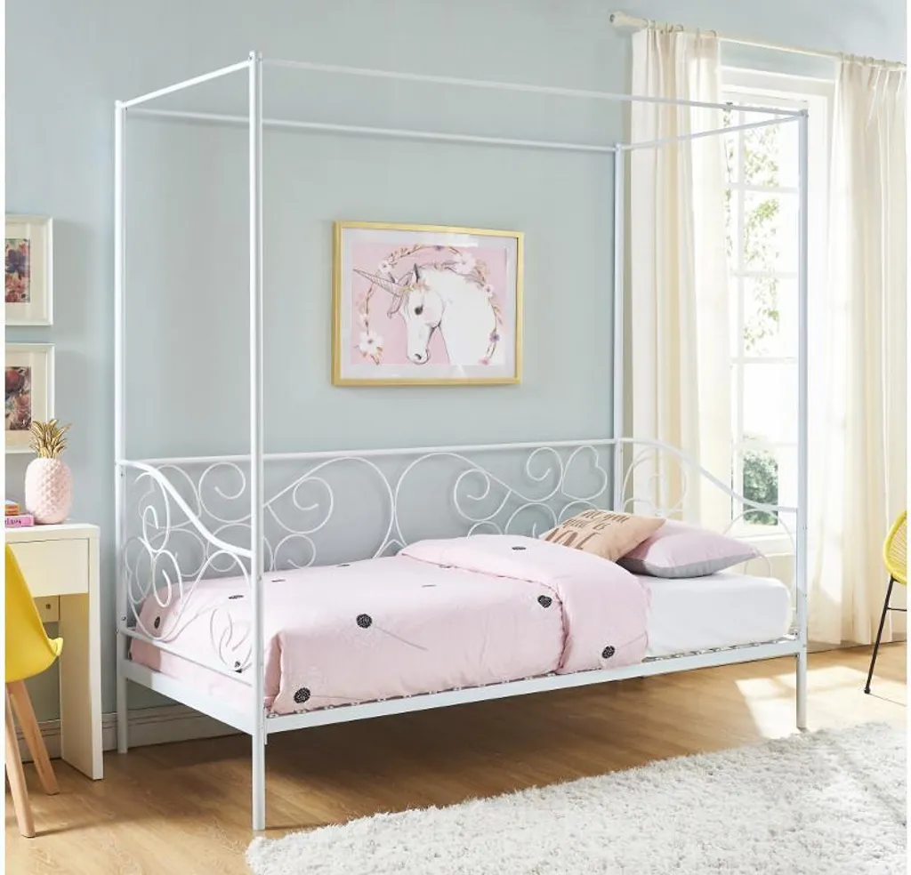 Metallbett Himmelbett – 90 X 200 Cm – Weiß – VIVIAN