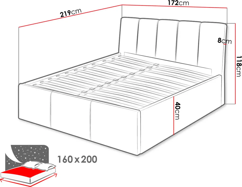 | Bettgröße | 140 x 200 cm, 160 x 200 cm, 180 x 200 cm |