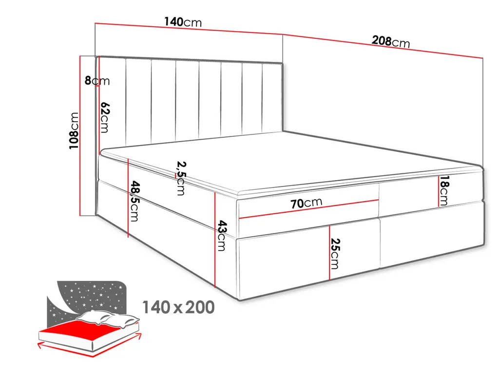 Mirjan24 Boxspringbett Alberdus II, Ehebett Mit Zwei Bettkästen, Doppelbett, Stilvoll Schlafzimmer Bett (Itaka 15, Größe: 140×200 Cm)