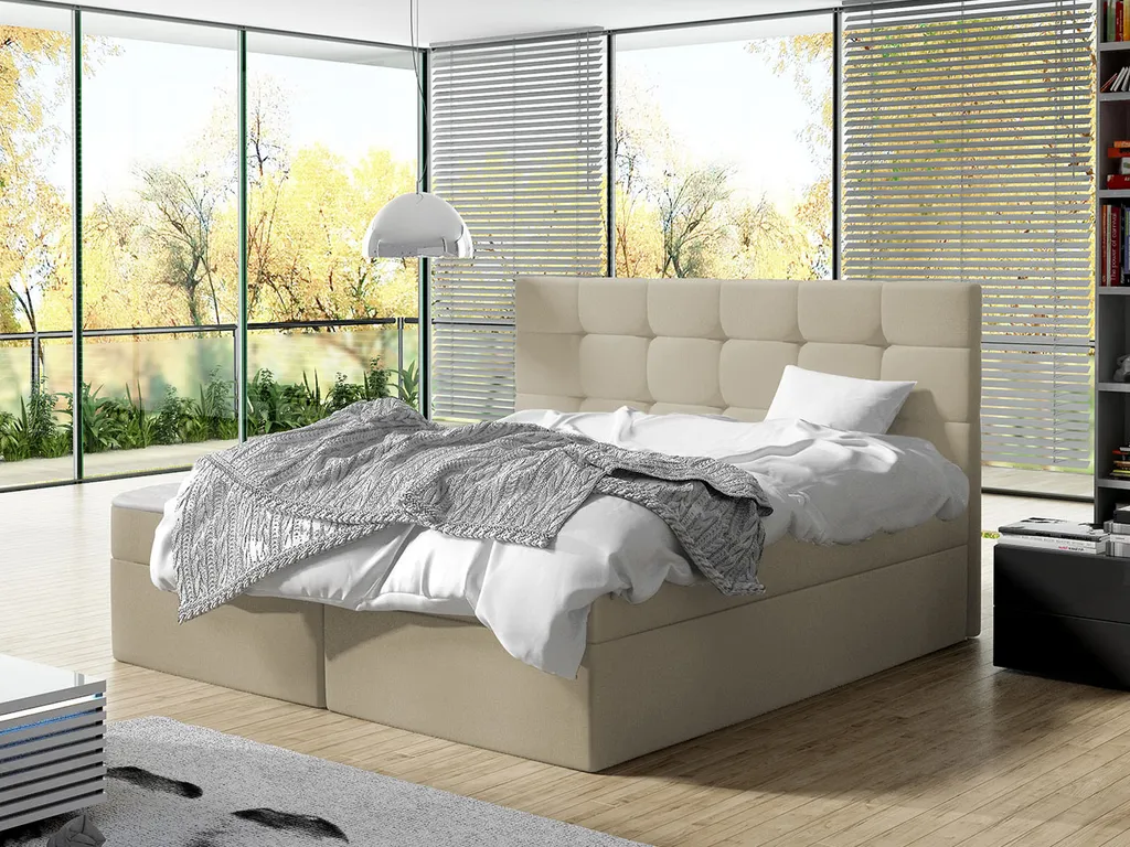 Mirjan24 Boxspringbett Luanda, Doppelbett Mit Zwei Bettkästen Und Matratze, Ehebett (Farbe: Manila 02, Größe: 160×200 Cm)