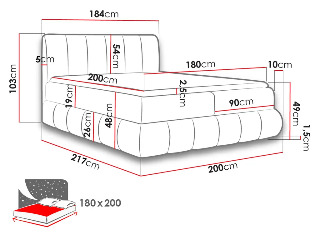 Mirjan24 Boxspringbett Venezia, Ehebett Mit Zwei Bettkästen, Doppelbett Mit Topper, Schlafzimmer (Kronos 22 Größe: 180×200 Cm)