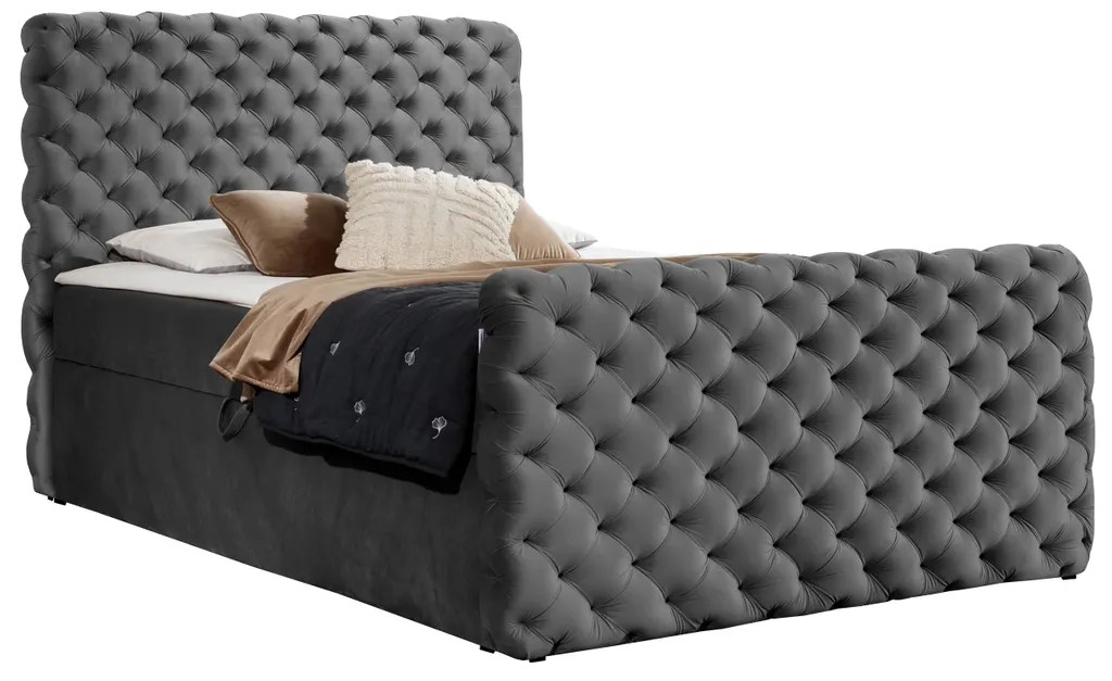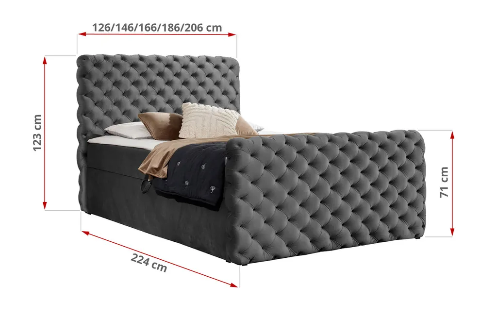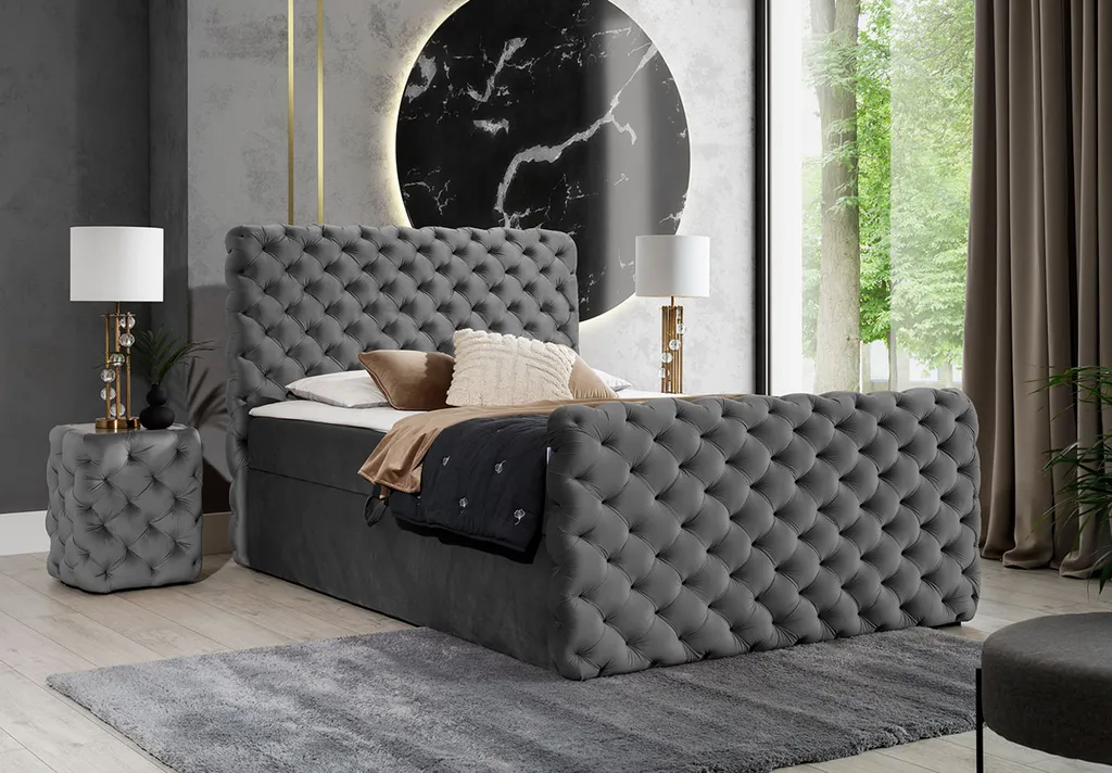 MKS MEBLE Boxspringbett – Doppelbett Mit Multipocket-Matratze – Polsterbett Mit Bettkasten Und Kopfstütze – Calvardo 200×200 – H4 Grau