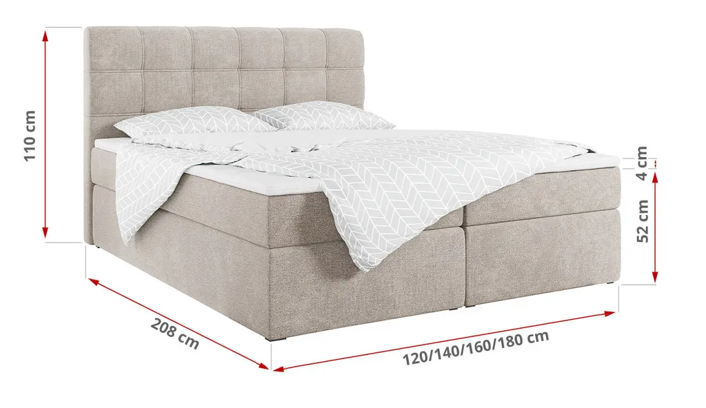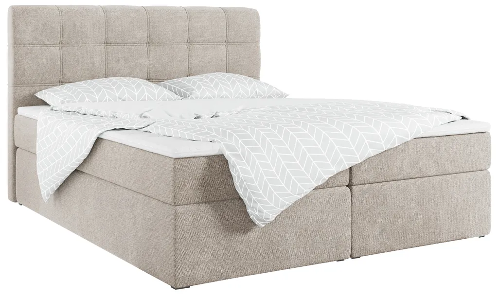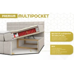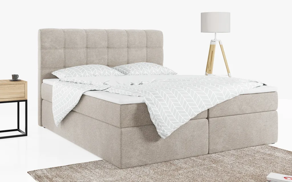 MKS MEBLE Boxspringbett- Doppelbett – Polsterbett Mit Multipocket-Matratze Und Topper – Stauraumbett Mit Bettkasten – H3 Matana Beige 120 X 200 Cm – Speed Dream