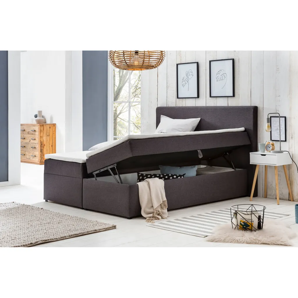Möbelfreude Polsterbett Mit Bettkasten Modell: Bianca, 160 X 200 Cm Härtgrad H2, Anthrazit Inkl. Topper, Mit Bettkasten