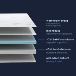 Newentor® Matratzentopper 180x200cm, 7cm Höhe Gel Memory Topper Mit Waschbarem Bezug, Atmungsaktive Und Bequeme H2/H3 Memoryschaum Matratzenauflage Für Boxspringbett Und Unbequeme Betten Schlafsofa