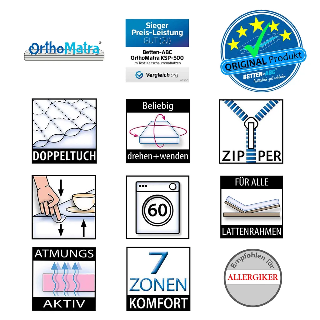 OrthoMatra KSP-500 XXL, Matratze In Härtegrad H4 7 Zonen / RG30 / Höhe Ca. 16 Cm / Bezug Waschbar : 140×200