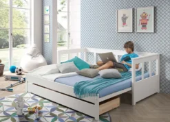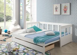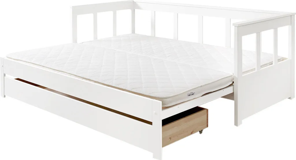 Pino Kojenbett Ausziehbar 90-180×200 Cm Mit Bettschubladen Weiß, Matratze:Ohne