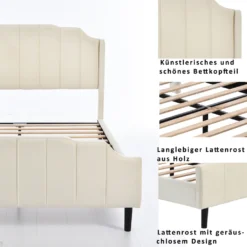 Polsterbett 140x200cm Bettgestell, Mit Kopfteil Fußteil Lattenrost Polsterbetten Holz Bett Doppelbett Erwachsenen Jugendbett Gästebett, Beige Ohne Matratze
