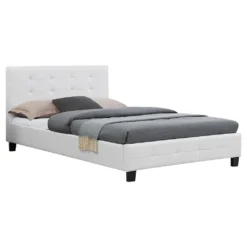 Polsterbett BRIGHTON Bett Mit Liegefläche 120×200 Cm Einzelbett Inklusive Lattenrost Jugendbett Mit Bezug Aus Kunstleder In Weiß