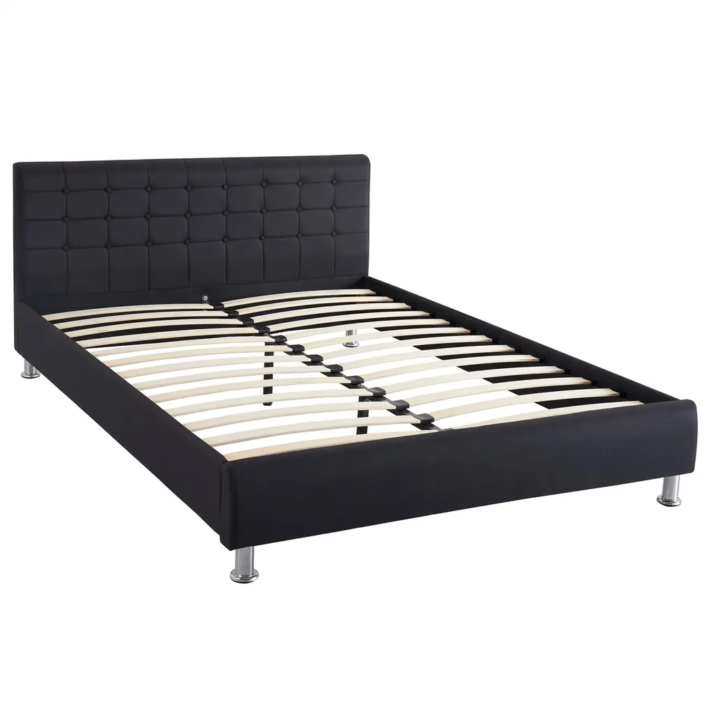 Polsterbett CANNES In Schwarz Einzelbett Doppelbett 140 X 200 Cm Mit Lattenrahmen