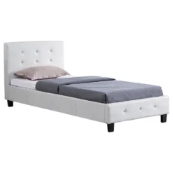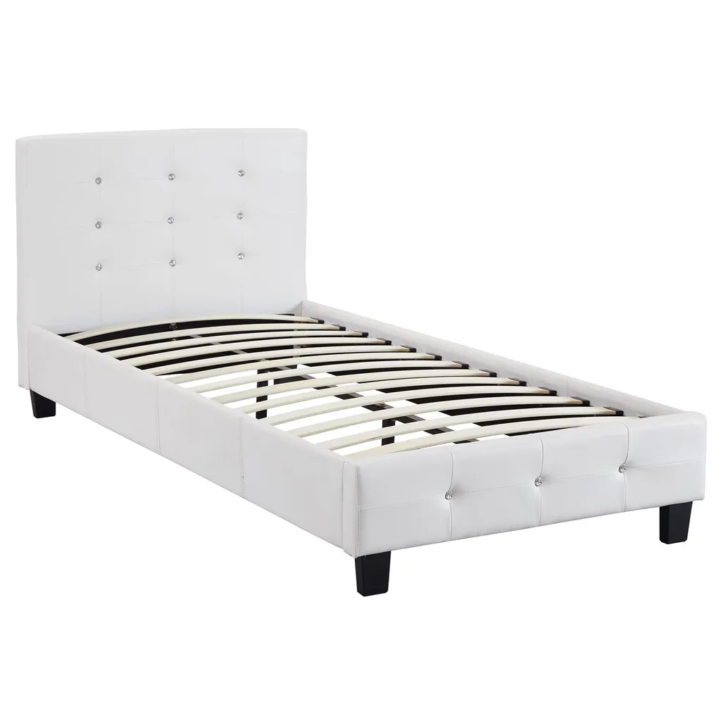 Polsterbett GLASGOW Bettgestell 90 X 200 Cm Einzelbett Designbett Mit Strasssteinen Inklusive Lattenrost Kunstleder In Weiß