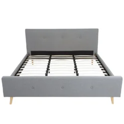 Polsterbett HWC-J98, Bett Doppelbett Bettgestell Mit Lattenrost, Massivholz 180x200cm Grau