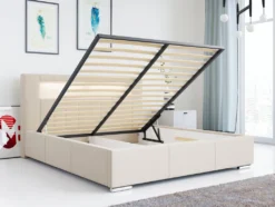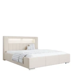 Polsterbett Mit Kopfteil – GOLD5 Mit LED Doppelbett Mit Bettkasten – Deko Bed Mit Lattenrost – 180×200 Cm Casablanka Creme