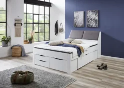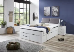RELITA Funktionsbett Maxi 140 X 200 Cm, Mit Rolllattenrost Mit 4 Bettschubladen Und Stauraum-Polster-Kopfteil
