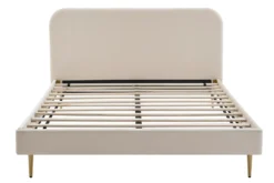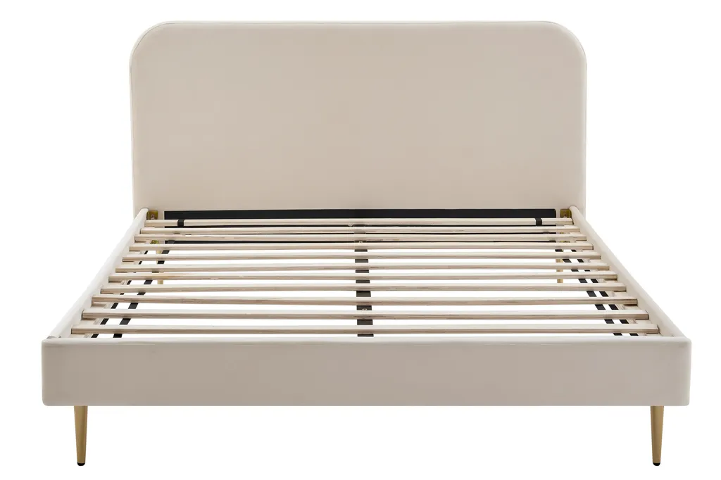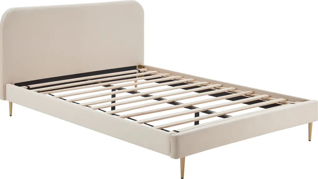 SalesFever Polsterbett Mit Samtbezug | 140 X 200 Cm | Inklusive Lattenrost | B 151,5 X T 214,5 X H 91 Cm | Beige – Goldfarben