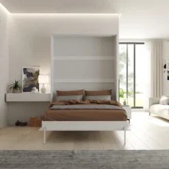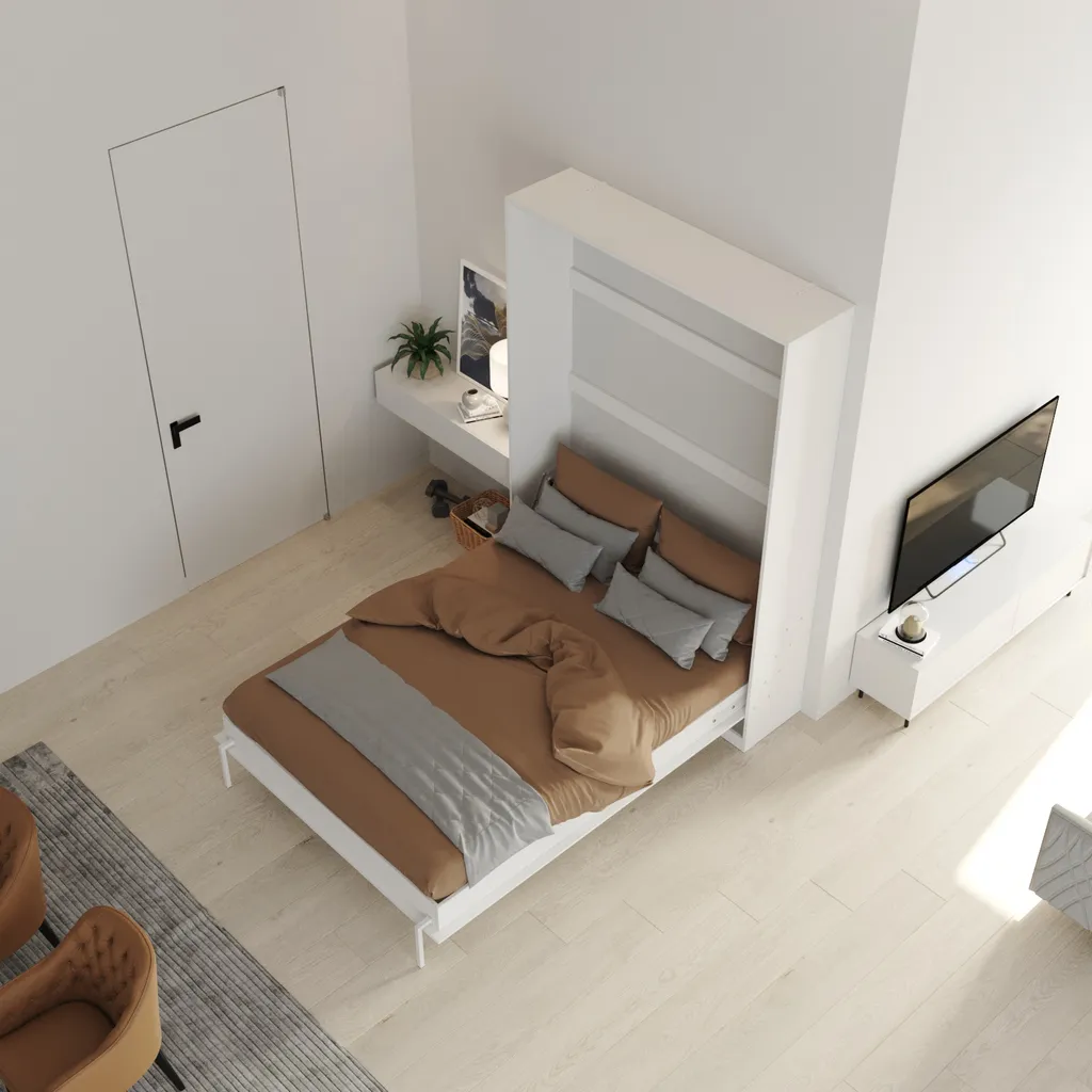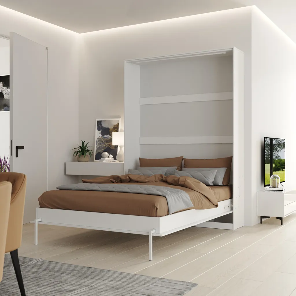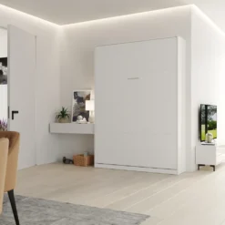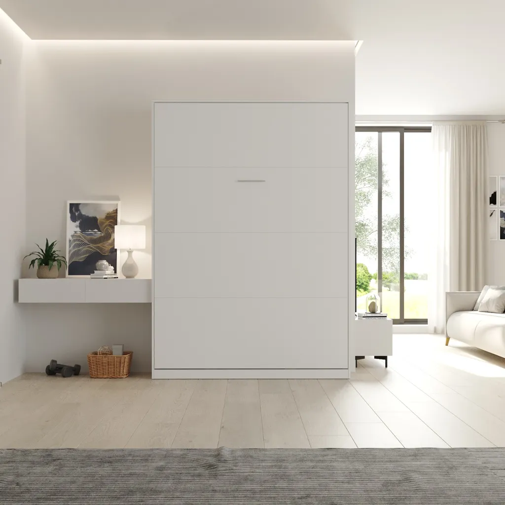Schrankbett Classico 140×200 Cm Vertikal Weiß Mit Gasdruckfedern Inkl. Tonnentaschenmatratze
