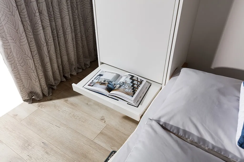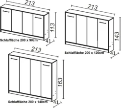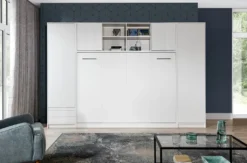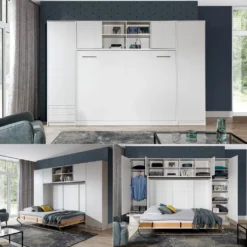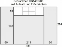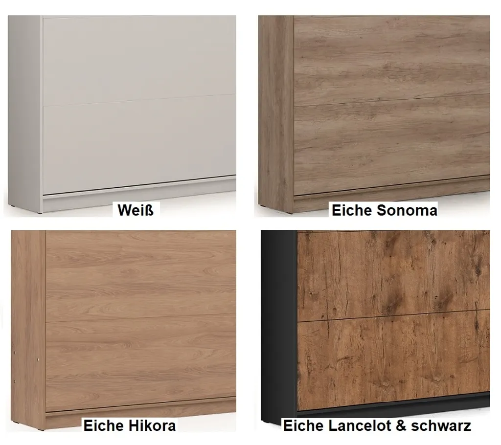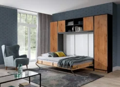 Schrankbett Klappbett Wandbett Horizontal HB 140 X 200, Schrankklappbett Mit Aufsatz Und 2 Schränken Weiß Eiche Sonoma, Lancelot Mit Schwarz