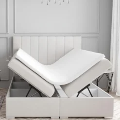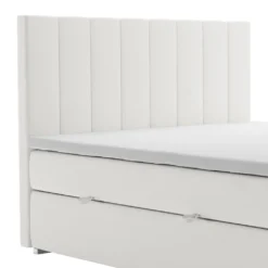 Selsey – Boxspringbett ALENNA, Doppelbett Mit 2 Bonellfederkernmatratzen, Topper, 2 Bettkästen Und Stoffbezug In Perlweiß, 180×200 Cm