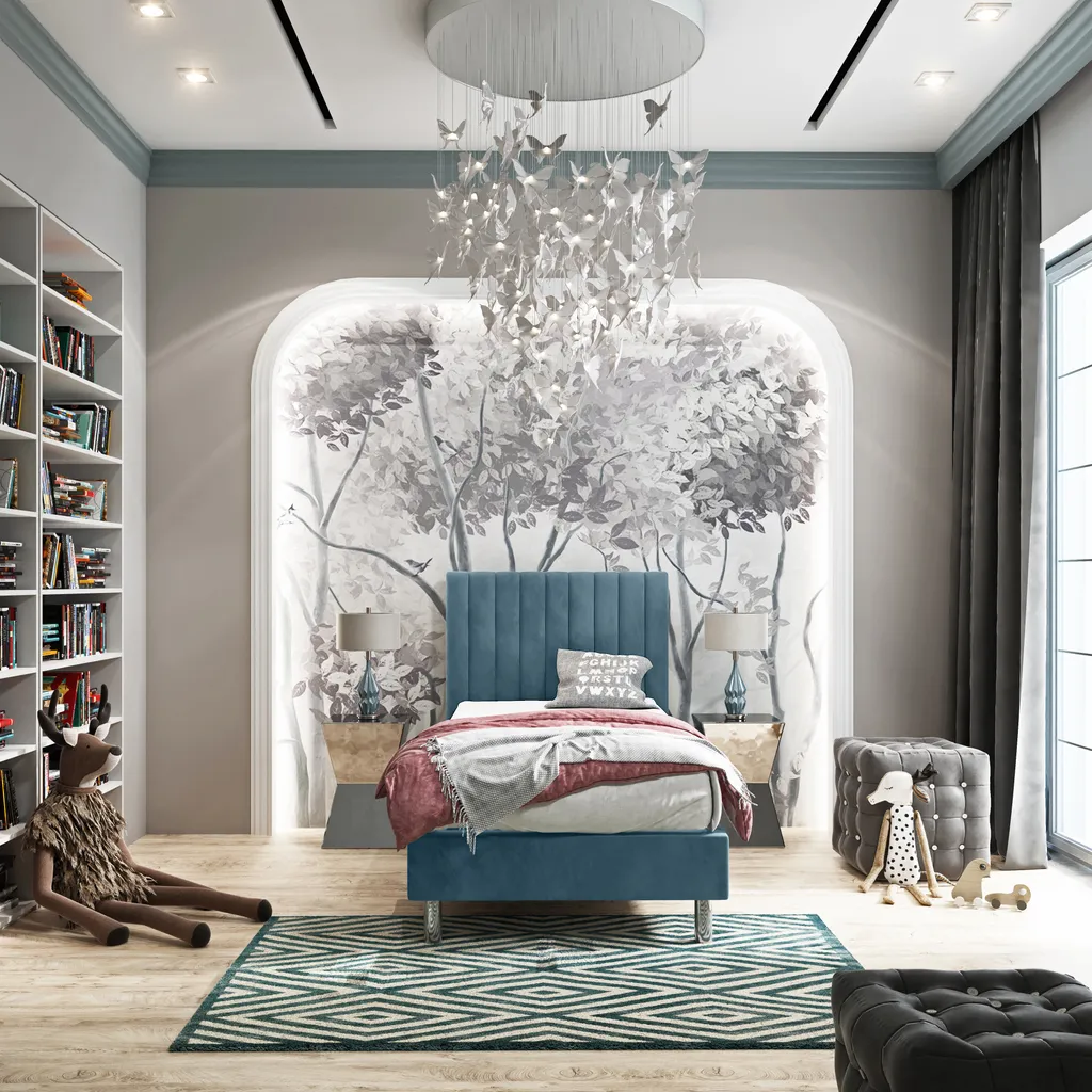 Siblo, Kontinentalbett Valencia, Holzrahmen Mit Holzlatten, Schlafzimmerbett, Doppelbett, 90×200, Hellblau