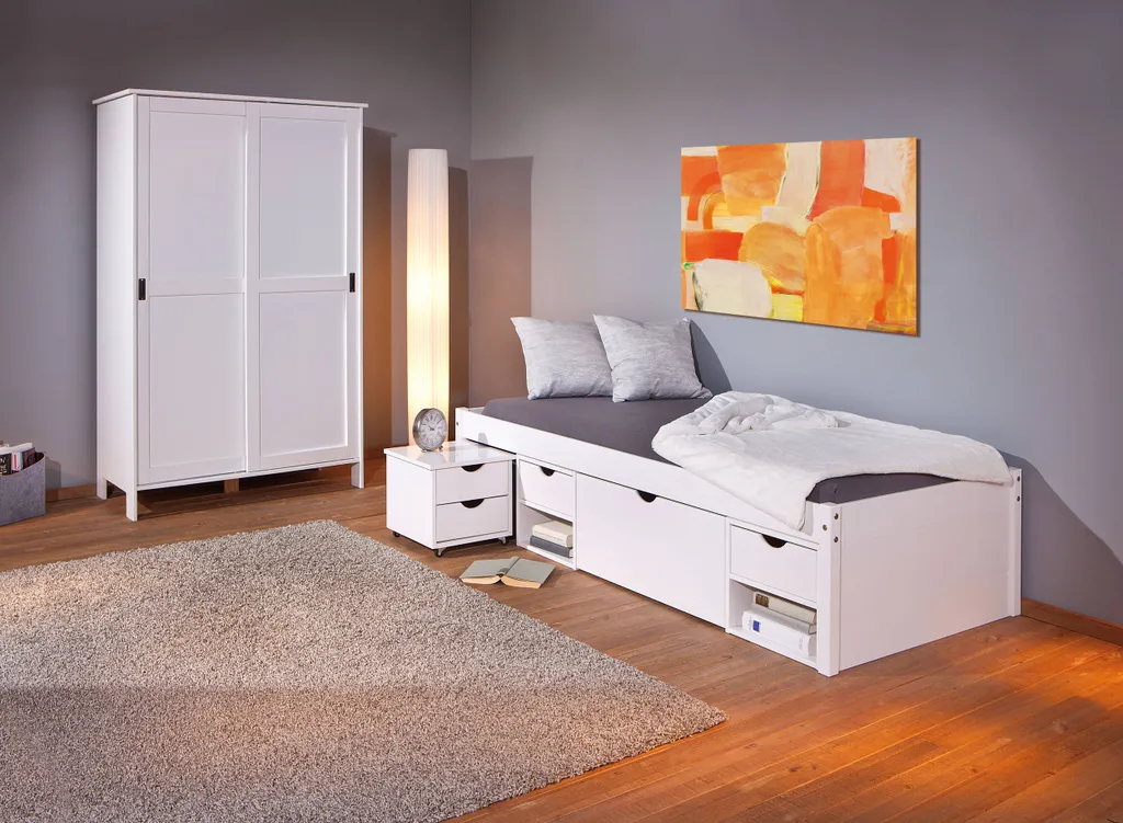 Stauraumbett Funktionsbett Kinderbett Jugendbett Till Massiv Weiß 90 X 200 Cm Inkl. Schubladen Schubkasten Nachtkommode Rost